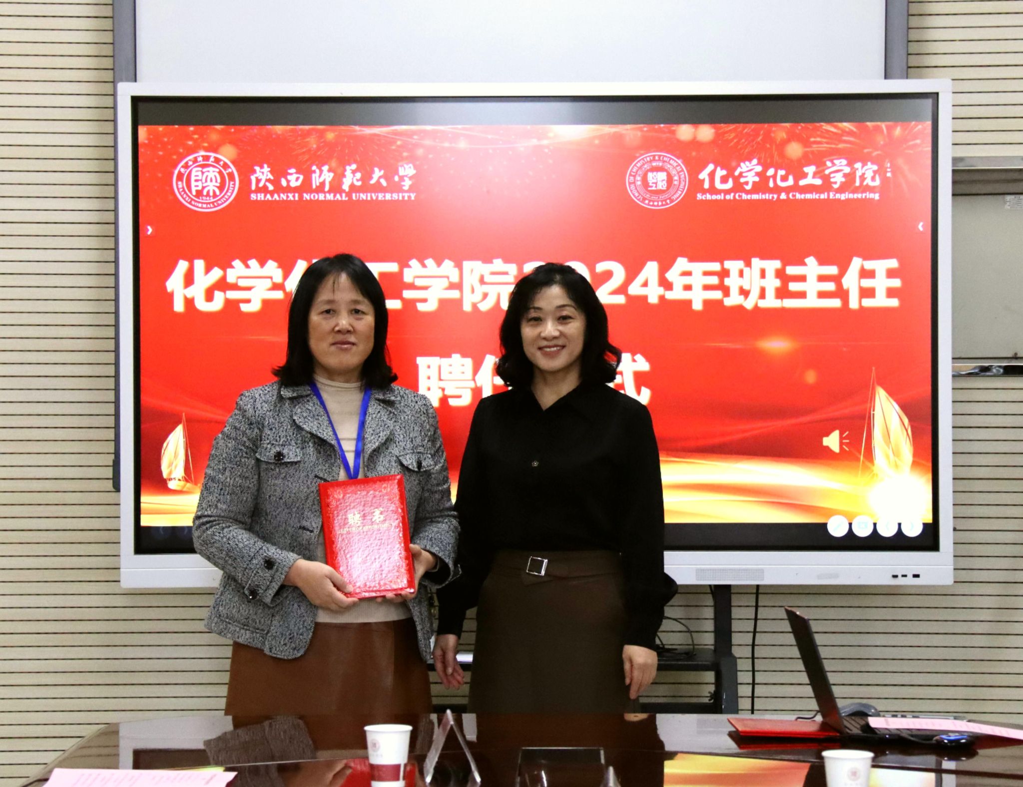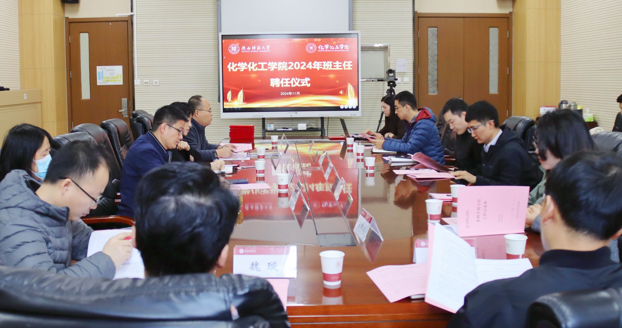 在致知楼1362会议室举行2024年本科生班主任聘任仪式。党委书记高玲香、党委副书记贾颍辉、副院长翟全国、2024年新任本科生项目主任和学业班主任及全体本科生专兼职辅导员参加会议。