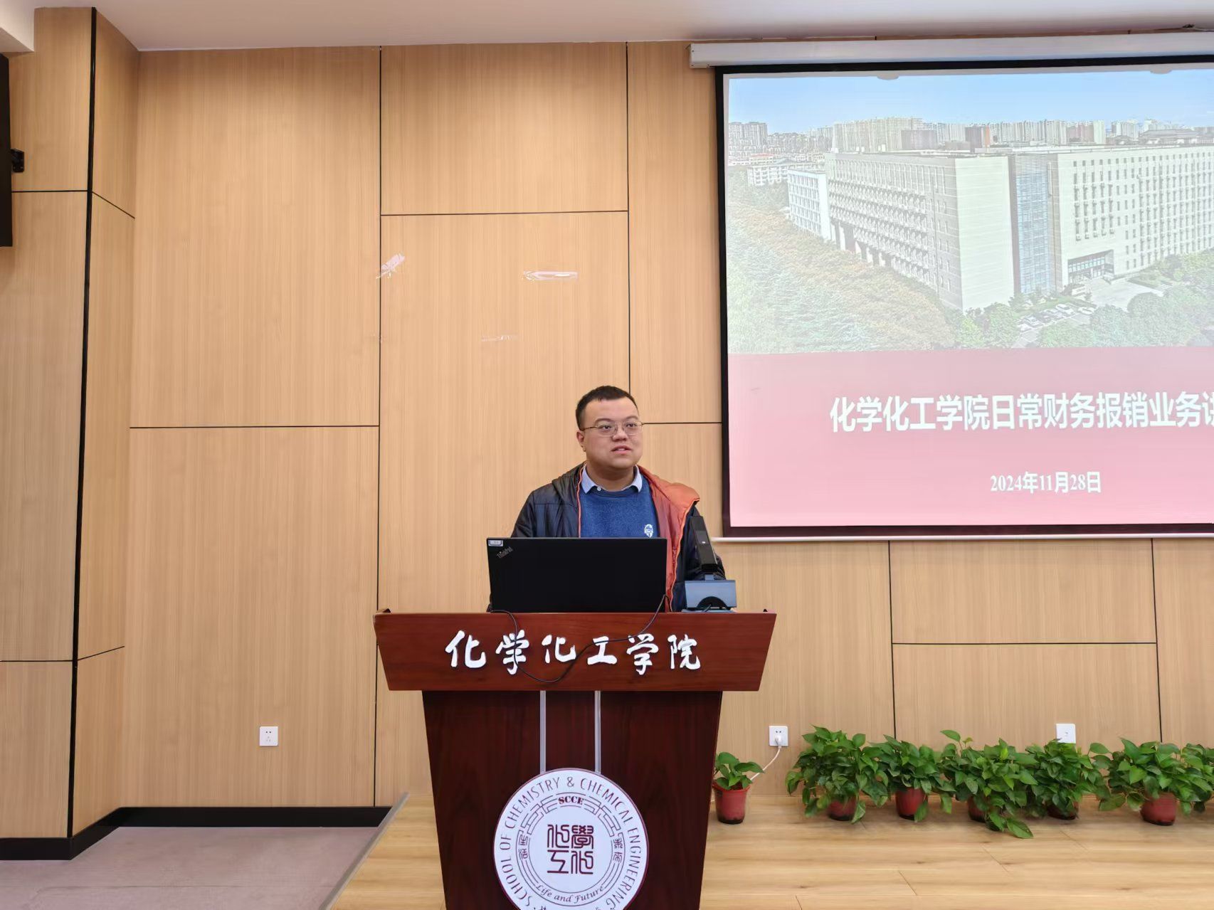 在致知楼1668会议室举行财务助理培训会。实验中心主任严军林,近三年入职的青年教师,十博