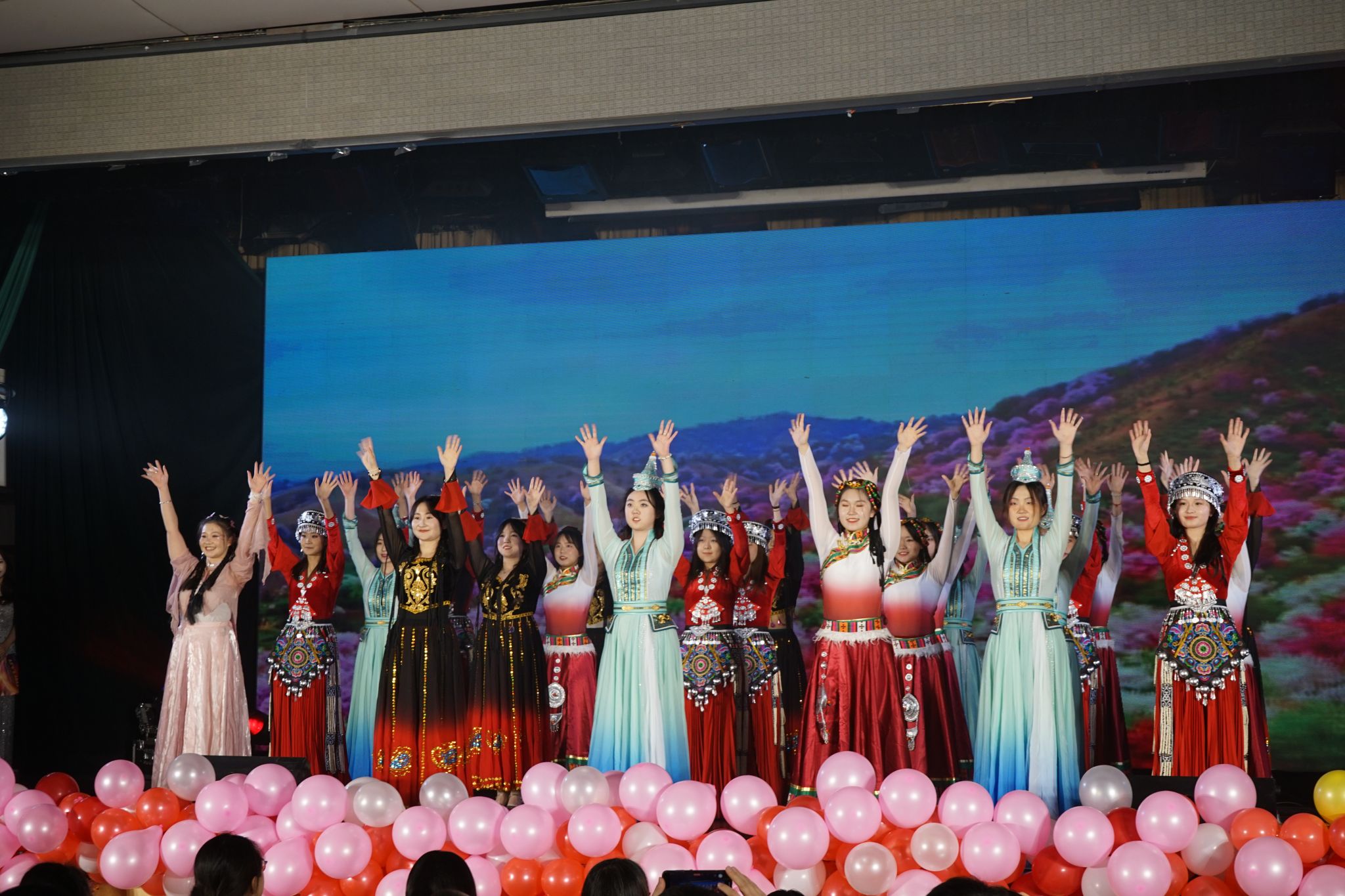 歌伴舞《灯火里的中国》高玲香书记与同学们一同登台高歌,用嘹亮的歌声表达了对祖国的热爱与祝福,让我们感受到灯火之下的锦绣山河与国泰民安;话剧《追光》围绕以张莎莎为原型的杨婉清展开,讲述她传承父志,毅然赴西部乡村支教的故事。激励广大学子用实际行动诠释奉献与传承,如红烛照亮他人,展现教育伟大意义;朗诵《忆往昔峥嵘,谱时代辉煌》传递了历史与时代的力量,展现了当代师大学子的精神风采和文化底蕴,让听众感受到师大的独特魅力与蓬勃生机;舞蹈《舞韵织梦》多民族学生同台共舞,书写了中华民族多元一体的华章,展示了中华民族和谐共生的宏伟篇章。