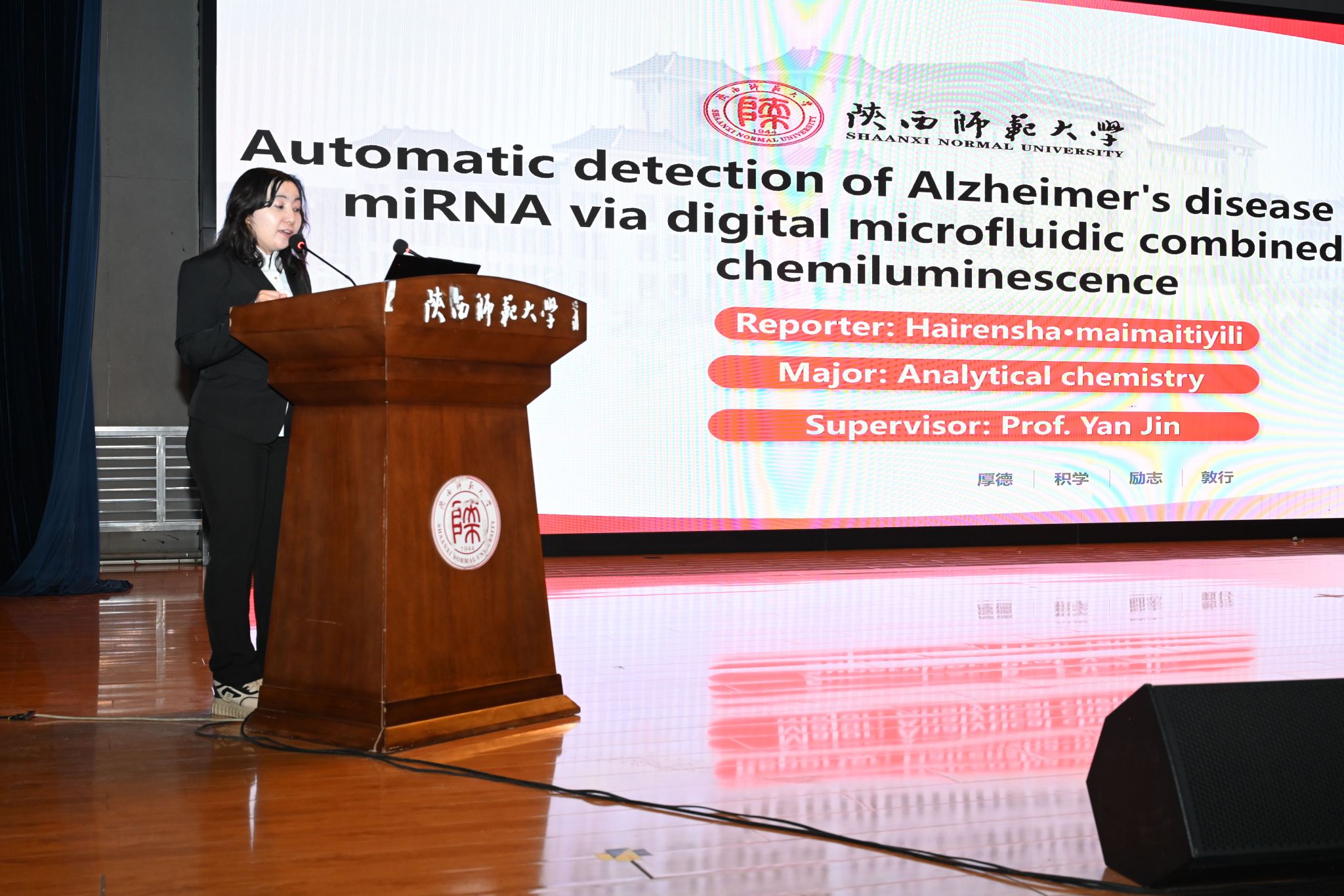 学术报告共分四个时段,分别由研究生代表张欣怡、胡定芳、苏怡帆、胡博文主持。18位硕博生代表依次登台,从研究背景、进展、到计划,条理清晰地阐述各自研究课题,展现了扎实的学术功底。