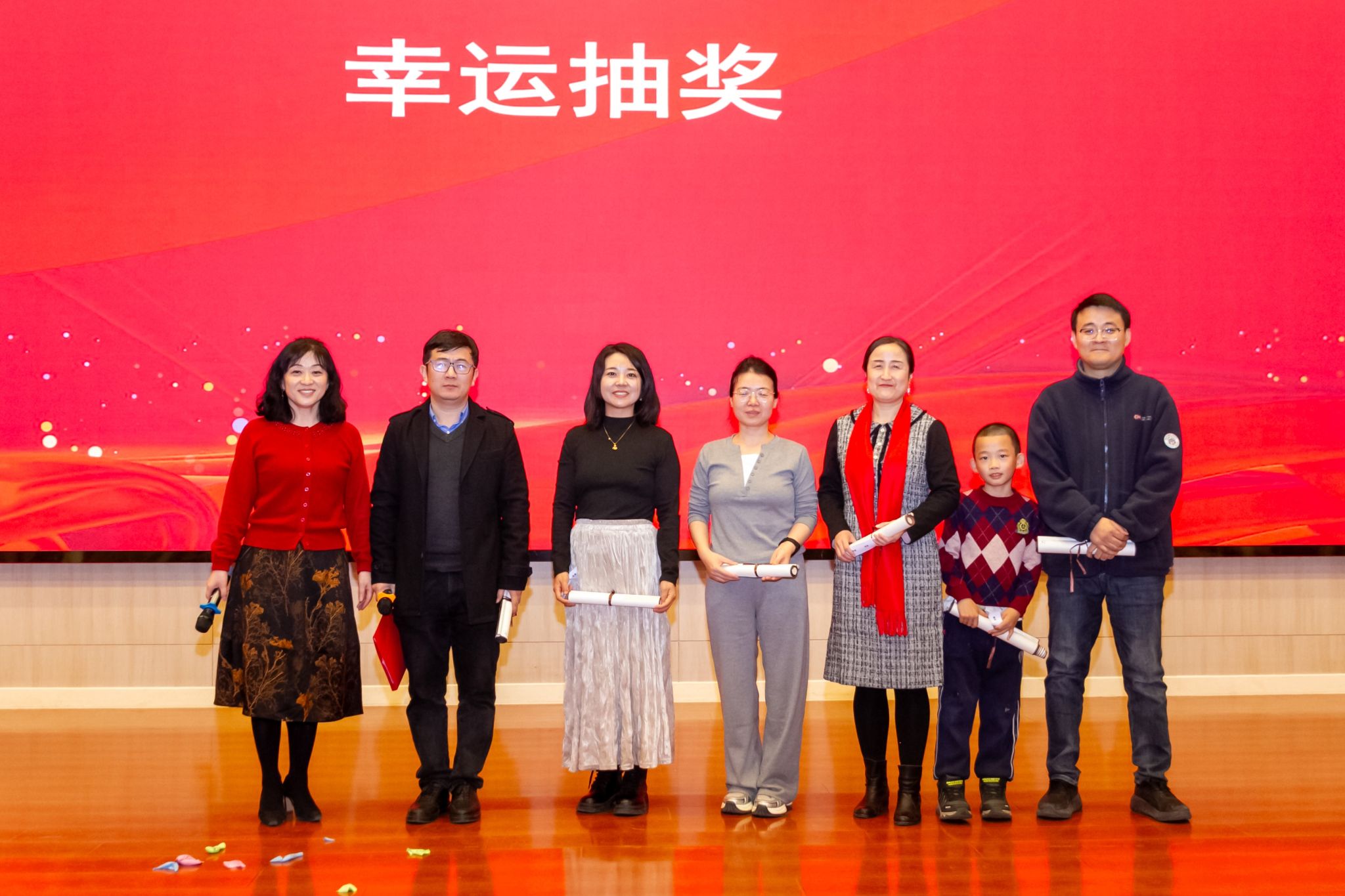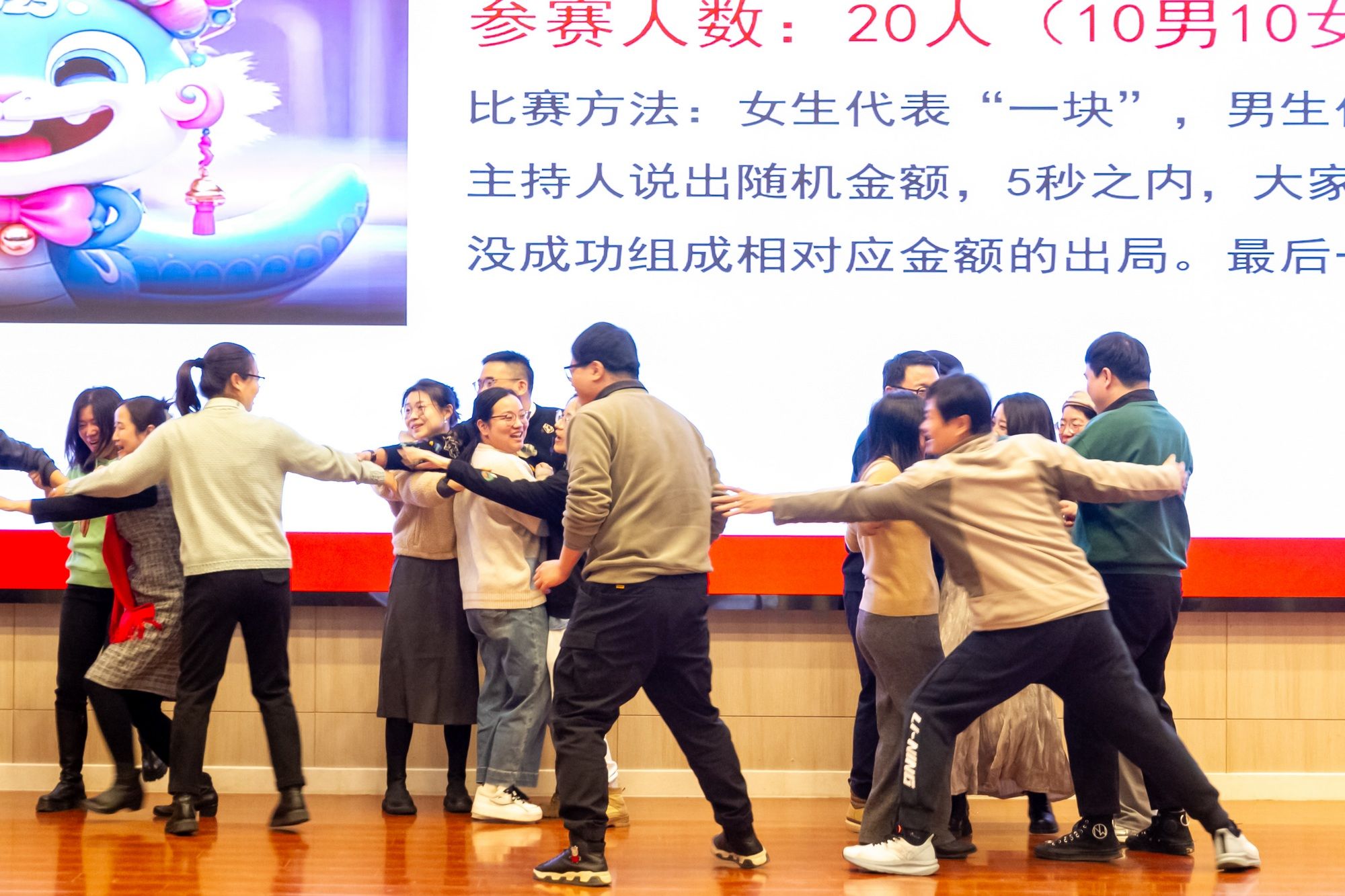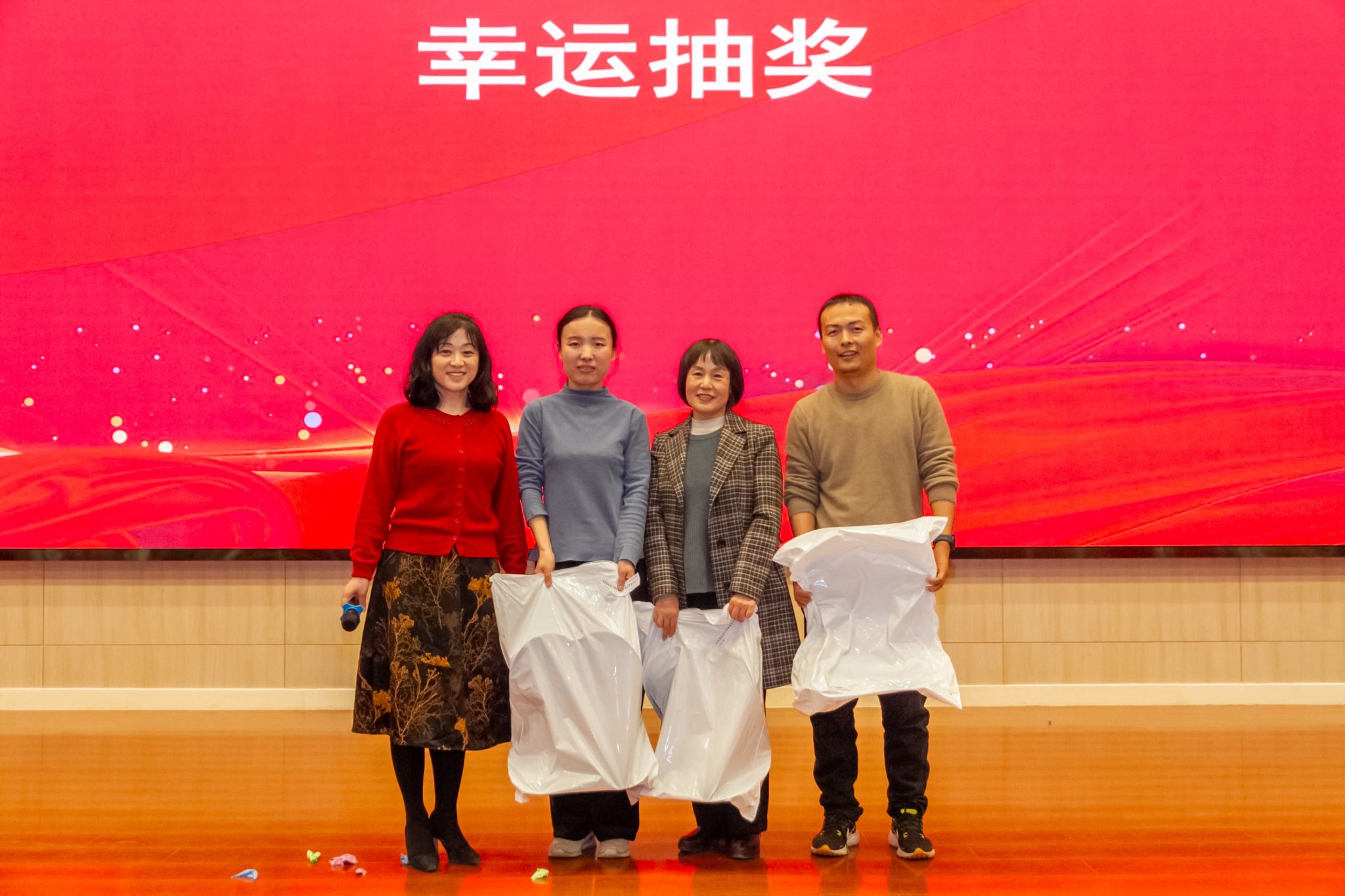 联谊会上,趣味互动的各类游戏接连不断。《东拼西凑》、《一块五》游戏现场欢声笑语、气氛活跃;《心心相印》、《夹气球》老师们两两搭档,尽显默契与合作;《猜猜看》你抢我答,《击鼓传花》热闹非凡。联谊会上的抽奖环节是联谊会上最激动人心的环节之一,十博