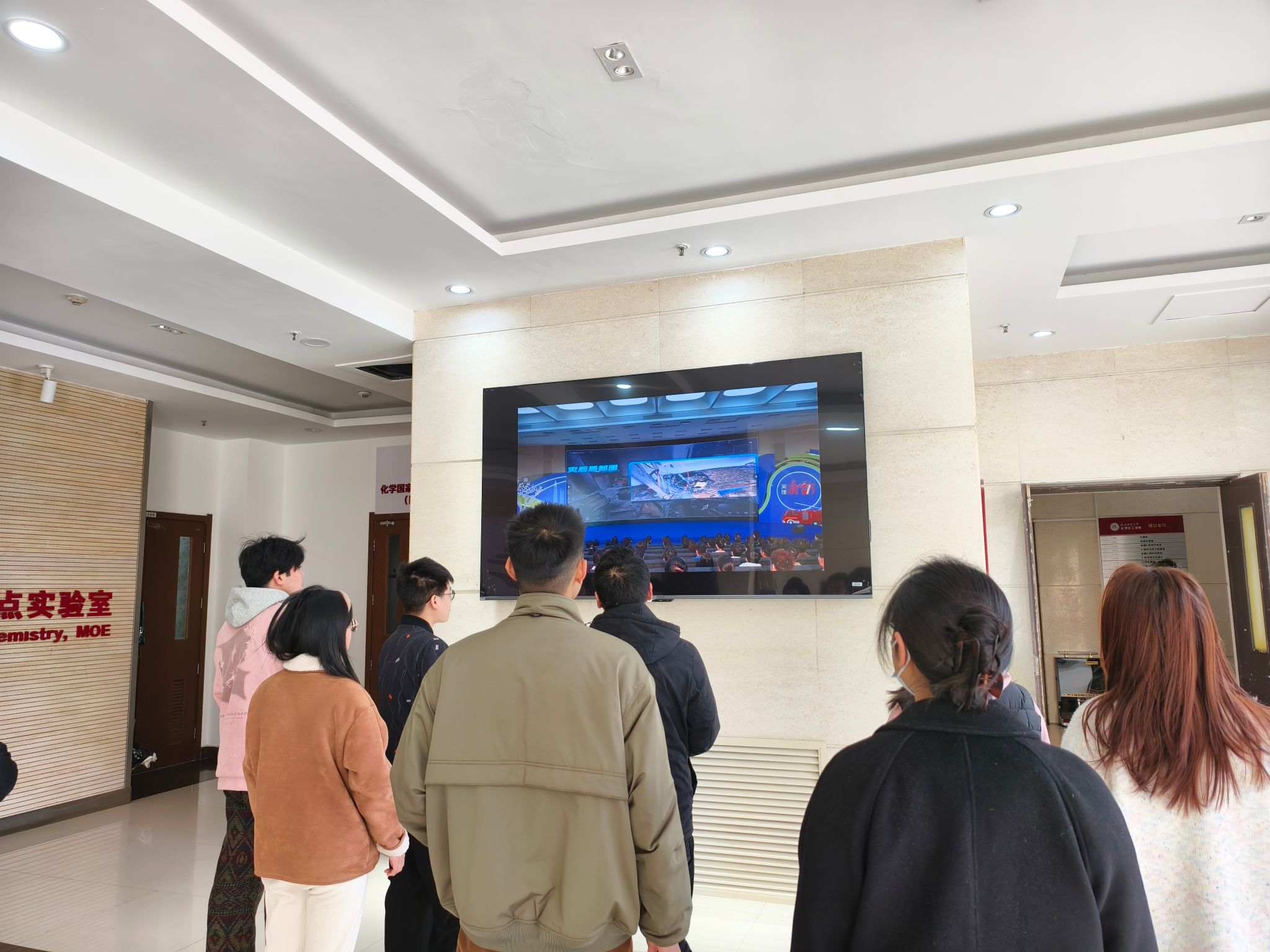 进行了细致安排。在1668会议室设立了分会场,组织2022级本科生以班级为单位有序观看直播,便于同学们集中学习、交流讨论;同时,在致知楼一段南大厅电子屏开启网络直播,方便其他师生随时驻足学习,确保尽可能多的师生能够参与到此次学习活动中来。