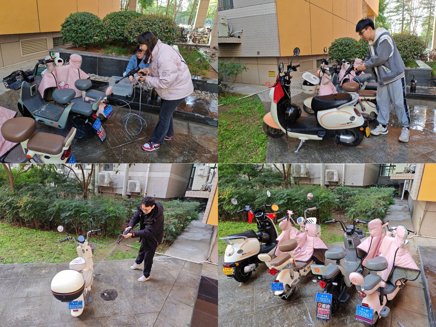学生会开展校园电动车清洗活动。近日,十博