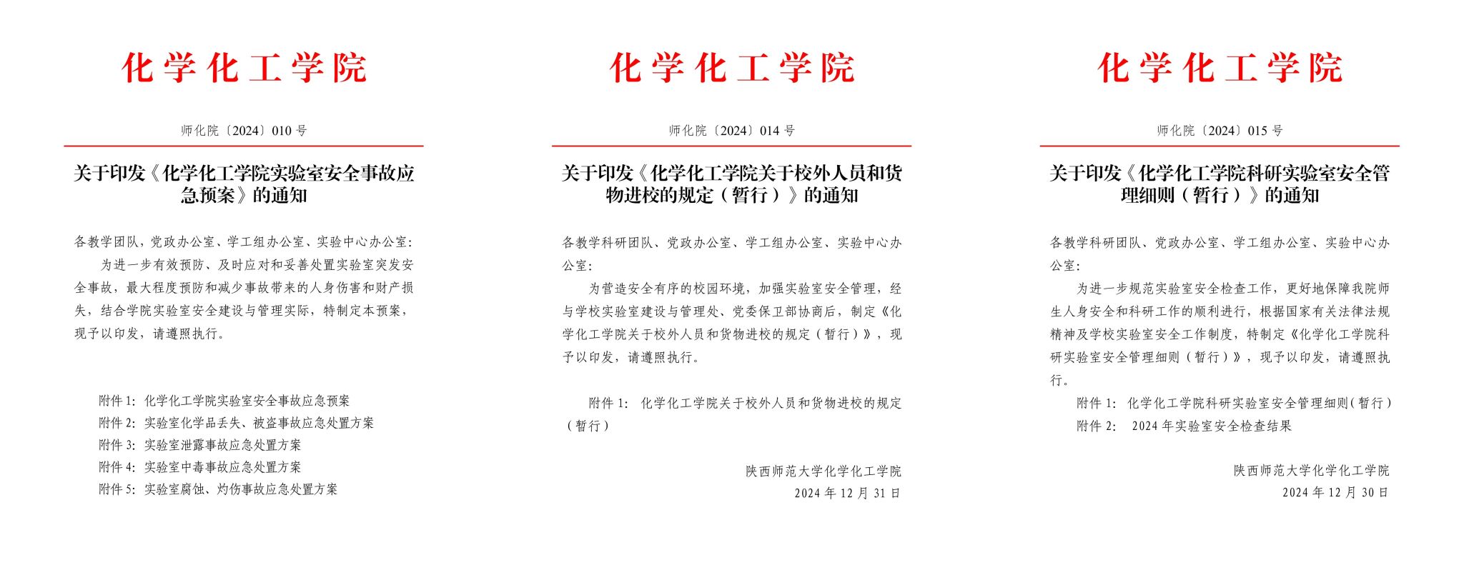正式实施了实验室安全管理“三项新规”:《实验室安全事故应急预案》—构建了实验室安全事故“预防—处置”响应机制;《科研实验室安全管理细则》-规范危化品全周期管理、气体使用标准化流程及废弃物处置;《关于校外人员和货物进校的规定》—严控外来危险源准入。实现了“事前预防—过程管控—应急处置”实验室安全精细化管理。