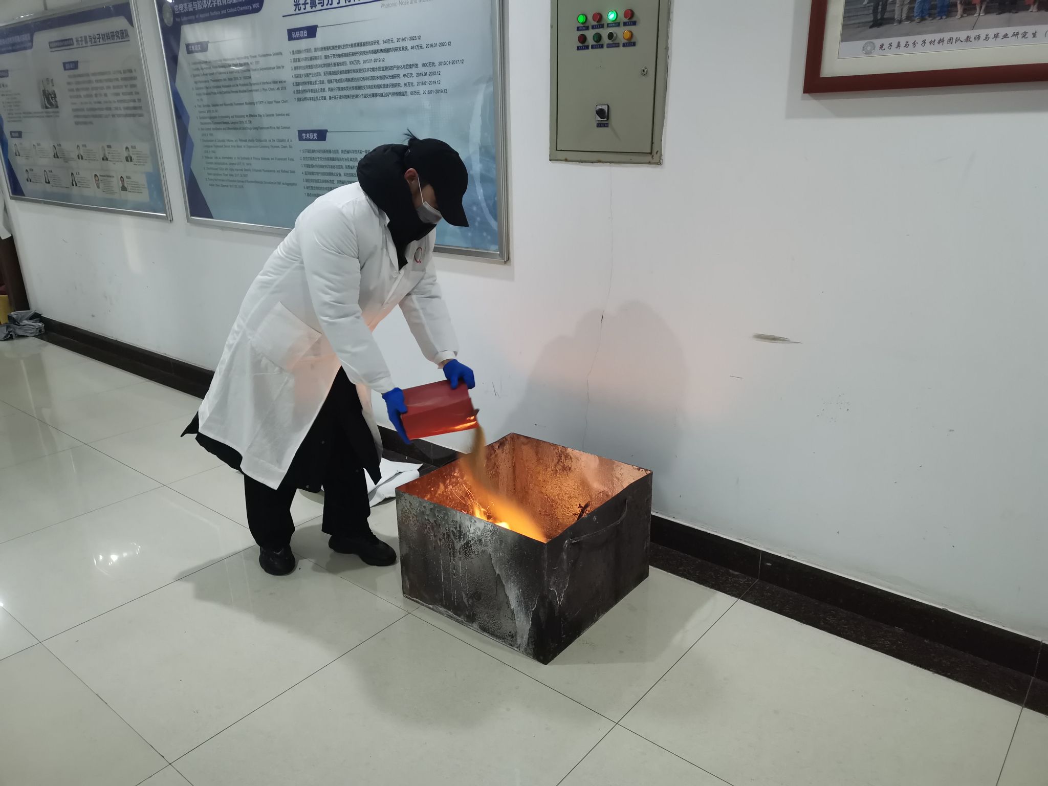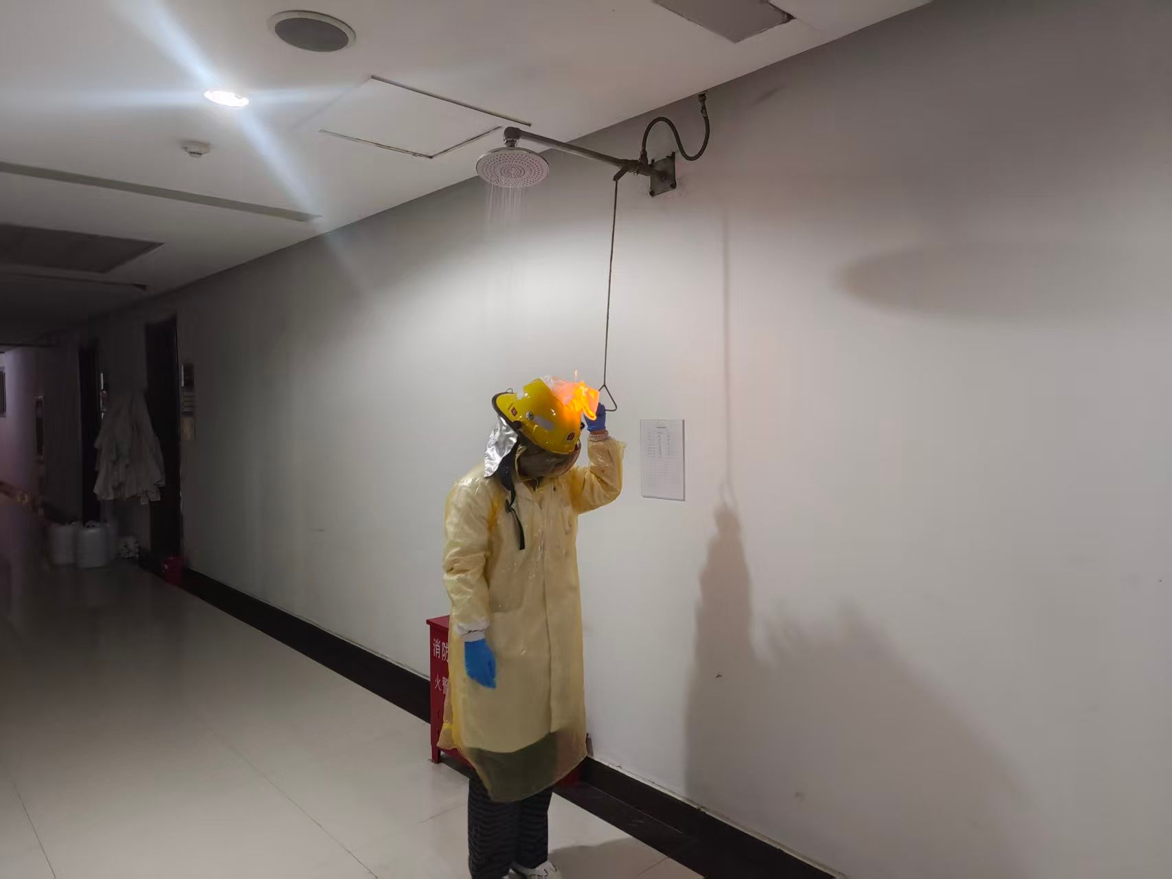为提升演练针对性与实用性,活动设置了多类应急救助和紧急情况处理项目,包括伤员担架撤离、盐酸打碎应急处置、楼道大火情消防装备灭火、室内被困人员破门救助、实验室小火情消防沙灭火、人员头发着火喷淋处理等。演练开始后,各应急小组严格遵循“统一领导、综合协调、分级负责”的应急处置原则,快速到岗履职,处置科学,有效检验了师生实战应对能力。