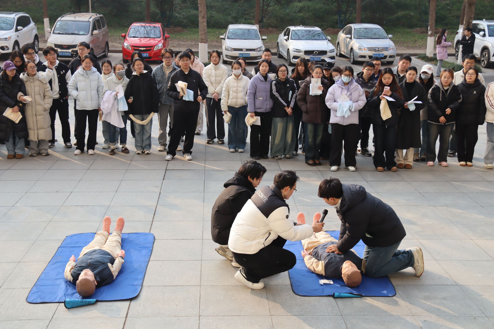 第二阶段专项应急救助培训面向全院研究生及教职工分组开展,涵盖三大板块内容:一是灭火项目培训,包括灭火毯、灭火器实操演练;二是医学紧急救助培训,涵盖心肺复苏和医疗应急包使用;三是喷淋装置和洗眼器使用培训。培训中,校医院外科大夫李米红针对实验与火灾场景中的常见外伤,详细讲解了关键急救步骤,并现场演示了医疗应急包内物品的规范使用方法;体育十博