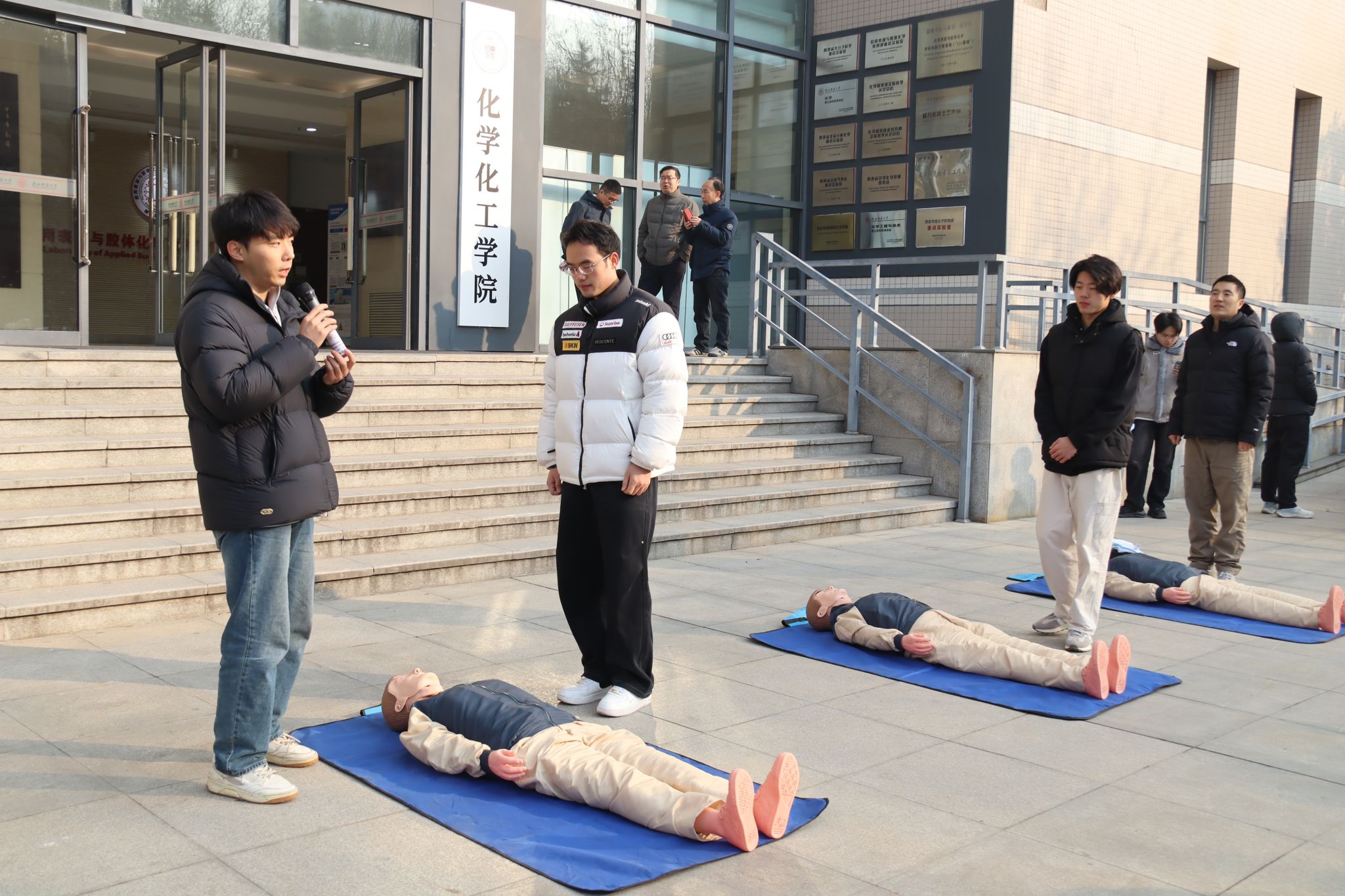 学生规范使用洗眼器避免严重伤害的正面实例,以及部分高校因不熟悉应急设备导致事态扩大的反面教训,强调演练后开展灭火毯、灭火器使用及洗眼器、紧急喷淋装置操作等专项培训的重要性,要求全体师生尤其是研究生务必熟练掌握关键设施使用方法,秉持“宁可备而不用,不可用时无备”的原则,确保紧急情况下能有效实施初期处置,最大限度保障生命安全。他指出,本次演练项目在去年基础上,结合时事热点和实际案例优化了应急救助环节,力求与日常实验场景紧密结合,号召全院以此次演练为契机,持续提升安全治理能力,共同守护平安校园。