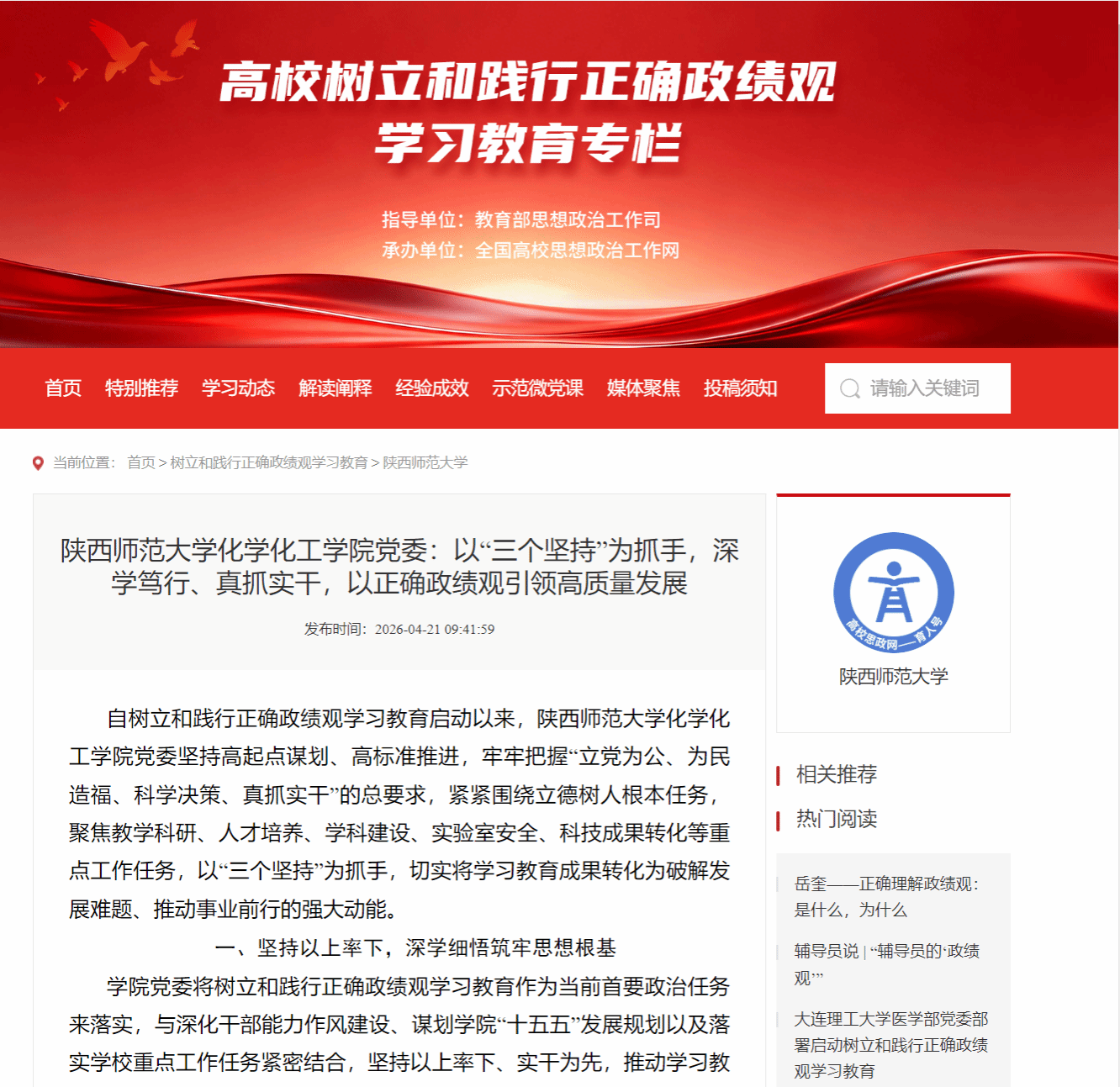 4月21日,《全国高校思想政治工作网》报道十博