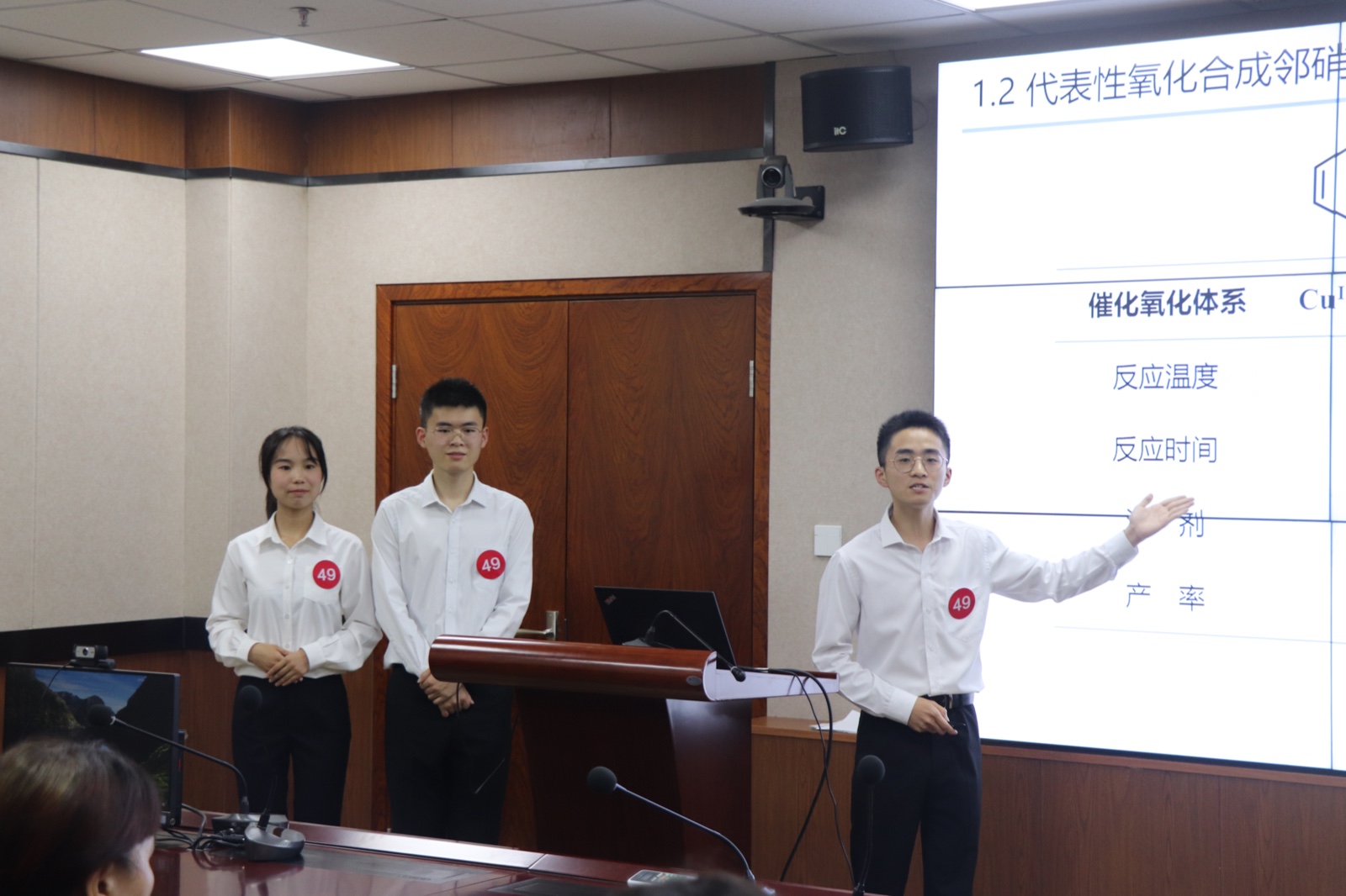 吴晋峰书记、薛东院长、实验中心严军林主任等多位老师关心同学们生活和总决赛准备情况,勉励同学们再接再厉,一鼓作气,勇攀高峰。在总决赛准备阶段,张琦老师针对有机化学基础实验教学内容对三位同学进行了强化训练,并围绕氧化反应研究进展,为学生们开发了线上微课,进一步充实了该项目的实验教学内容。决赛前夕,翟全国副院长组织了模拟答辩,张尊听教授、有机化学教工党支部书记石先莹,有机化学教研室主任李楠等对教学论文、幻灯片、实验视频、微课等竞赛内容提出了宝贵意见。石先莹老师还对幻灯片逐页进行了修改。十博