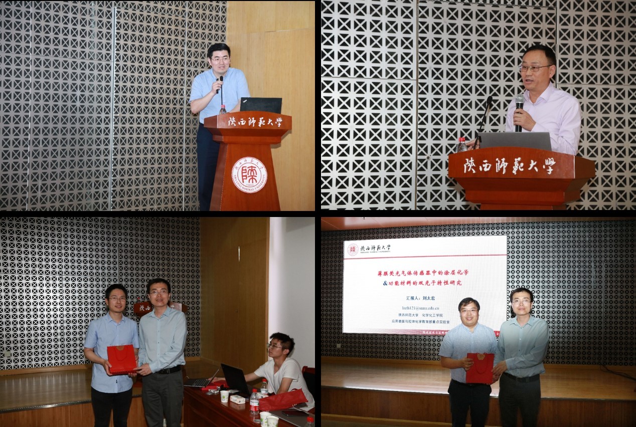 的情况。赵进才院士肯定了荧光技术的研究价值,高度评价了房喻教授团队在荧光领域的研究成果,并鼓励在场的科研工作者做深入、前沿的研究。之后,房喻教授介绍了所带领的光子鼻与分子材料团队,并分享了前期承办会议的收获,鼓励大家充分交流,加强合作。开幕式后,中科院上海微系统与信息技术研究所程建功研究员、中科院大连化学物理研究所徐兆超研究员、中科院新疆理化技术研究所窦新存研究员、南开大学丁丹教授、西安交通大学何刚教授、重庆大学侯长军教授、西安电子科技大学吴巍炜教授和陕西师范大学刘太宏副教授分别从有机半导体荧光敏感材料、超分辨成像荧光染料、爆炸物传感材料、生物医药光学功能材料等不同角度做了精彩报告。学术报告内容丰富精彩,提问环节气氛热烈。
