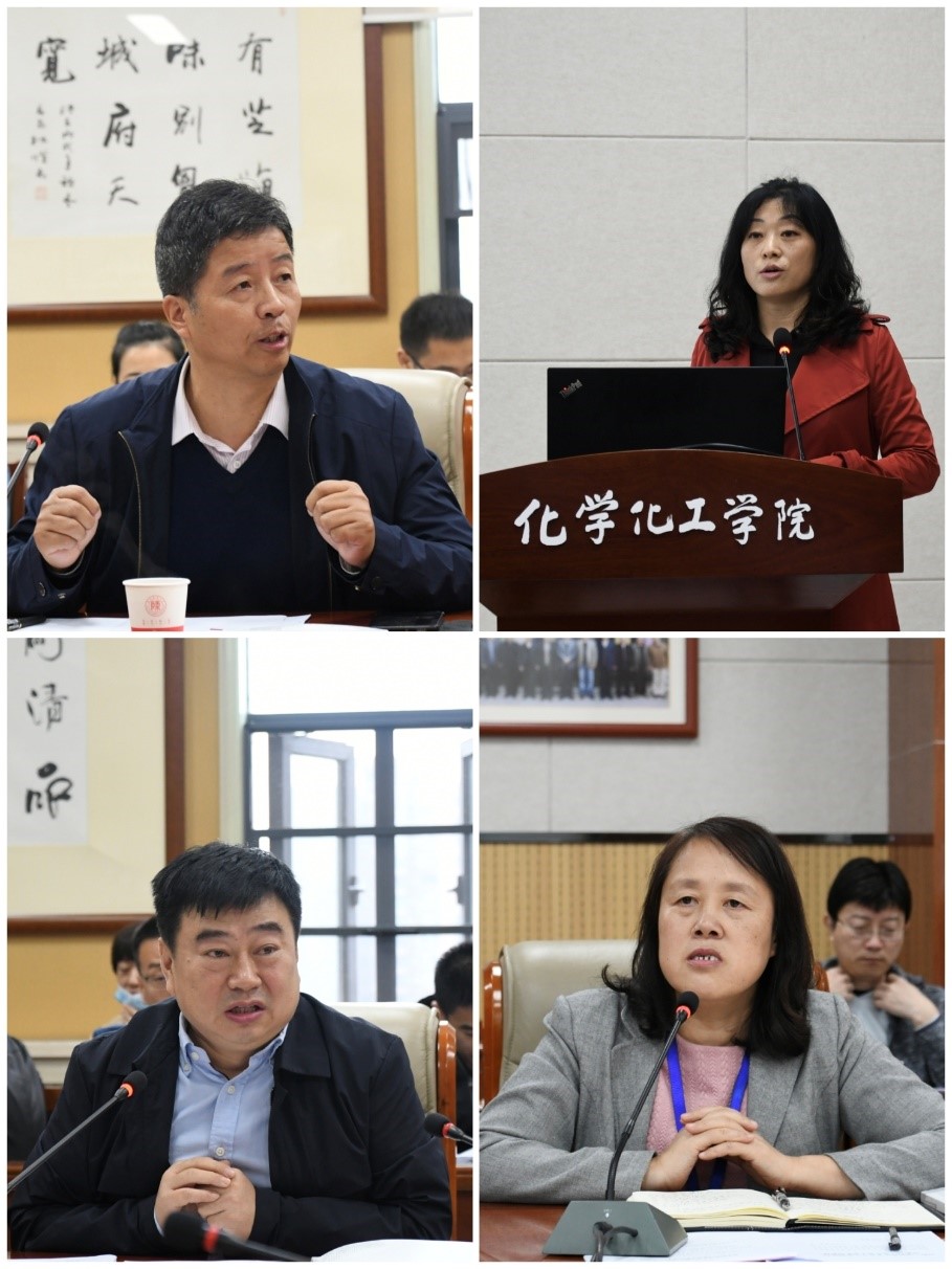 党委书记高玲香从依托学科的基本情况、本科人才的培养特色及以认促建持续改进等三个方面介绍了工作推进情况;副院长焦桓紧扣化学专业认证各项准备工作进行了汇报,并征求了与会人员的意见建议。