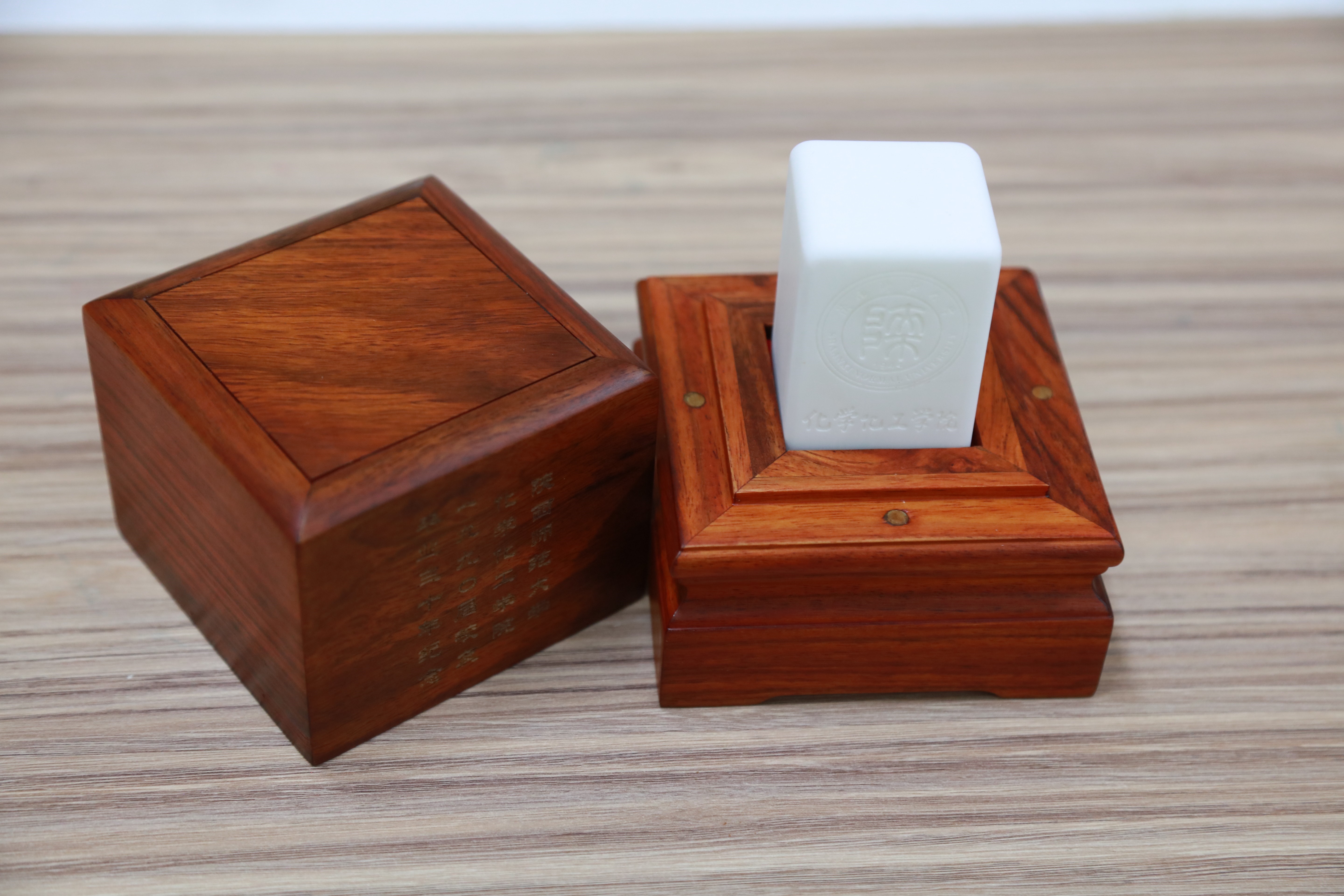 房喻教授科研团队创制的新材料刻制的印章纪念品,表达十博