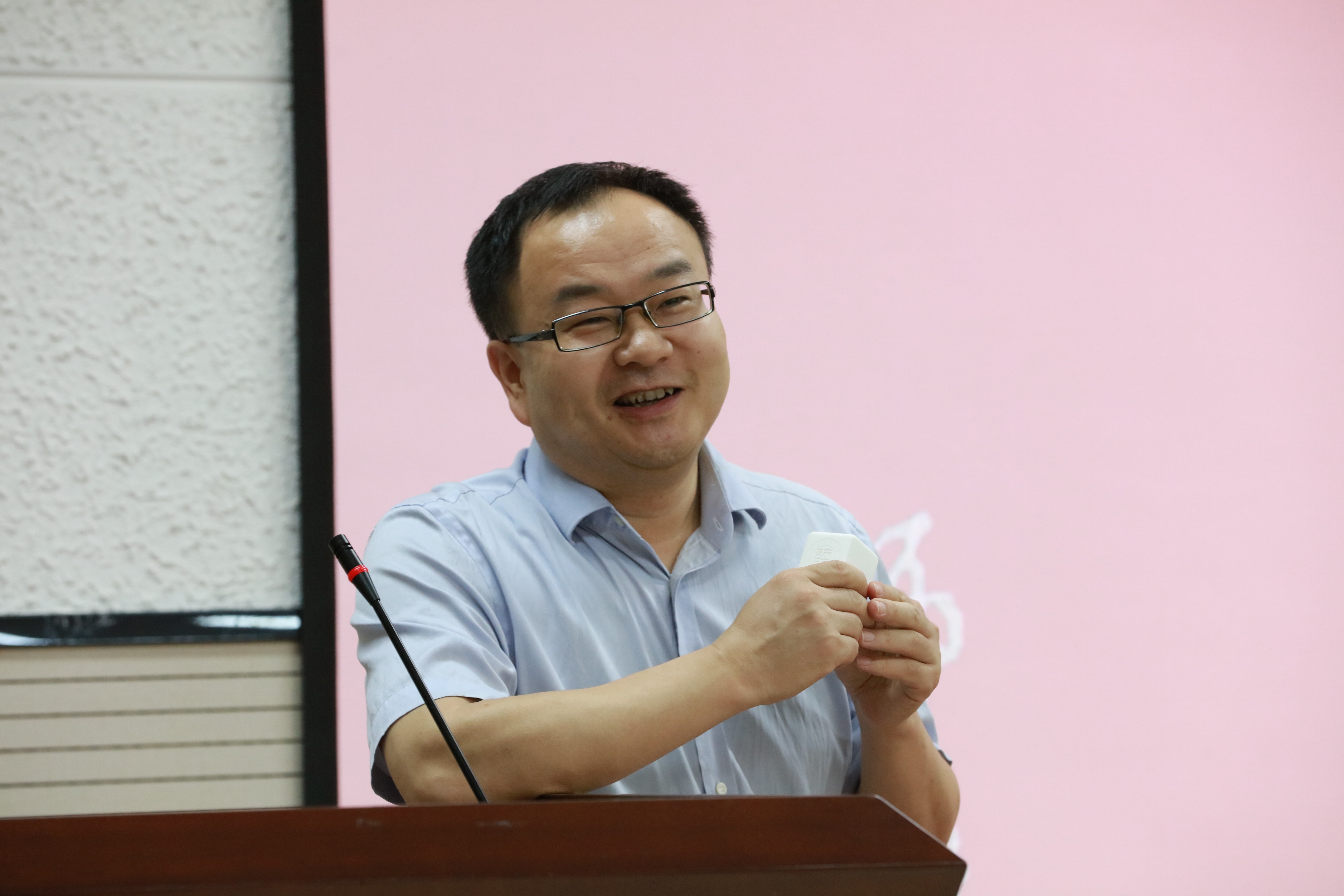 随后,教师代表房喻教授做了语重心长的讲话,回忆了校友在他课题组时的点点滴滴,通过向校友介绍我校教育博物馆的创办过程阐述他对教育的理解。他提到“我们所有人都从事着一份最重要的事业,教育。人一辈子真正决定命运的可能不是出生,而是后天接受教育的情况。遇到一个好老师,一个好学校,孩子可能一辈子就能好好成长起来。”房老师鼓励校友:“教师是一份崇高伟大的事业,希望大家都能好好工作,为我们苦难的民族多培养一些人才,为了国家民族多做一些贡献。”