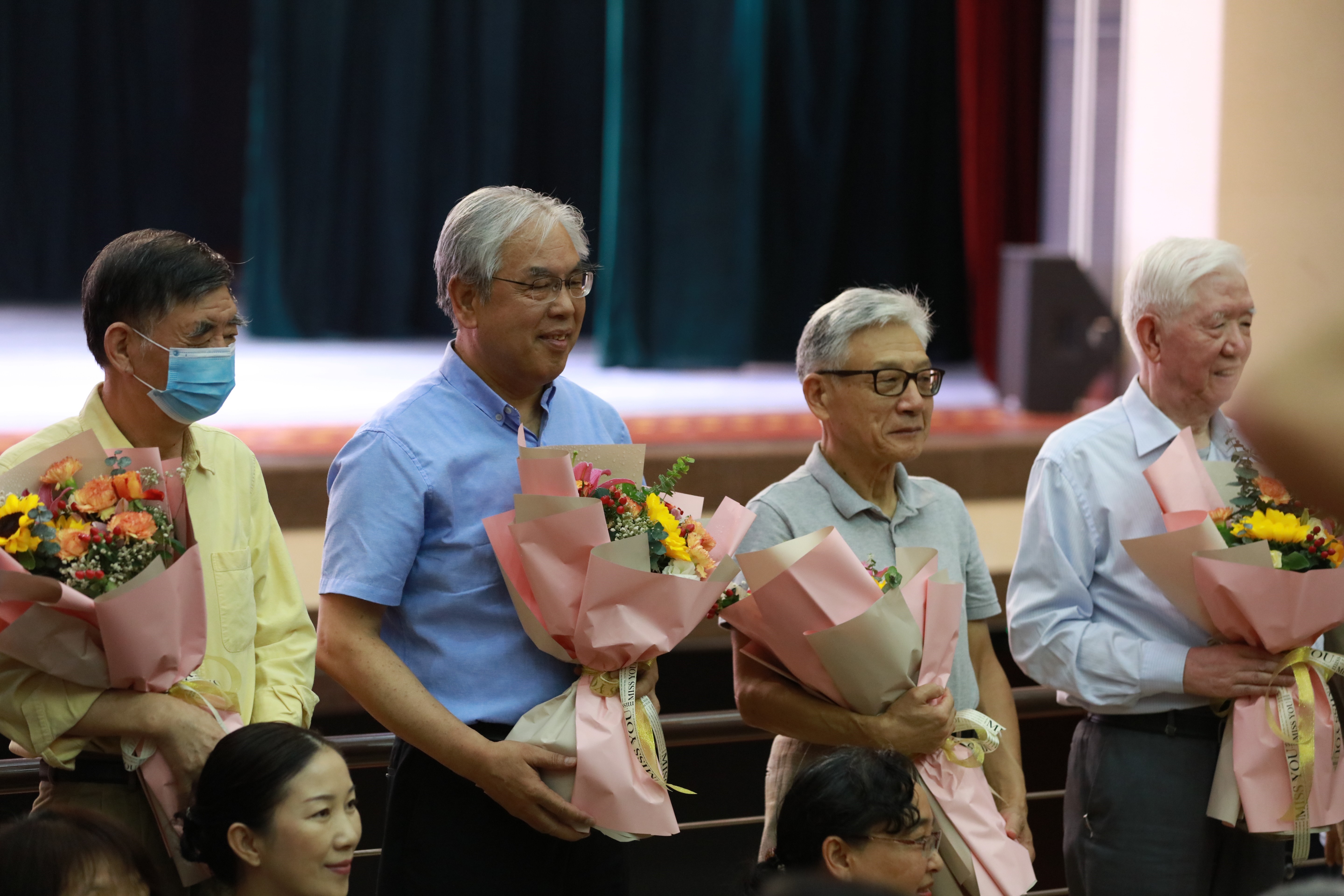 、相关职能部门负责人出席了大会。房喻教授受学校和校友邀请参加了全程纪念活动。化学系90届校友代表王琪为时任教师代表周宝石老师献花,以谢授业之恩、传道之情,并代表化学系校友接受学校赠送的《师大故事》。