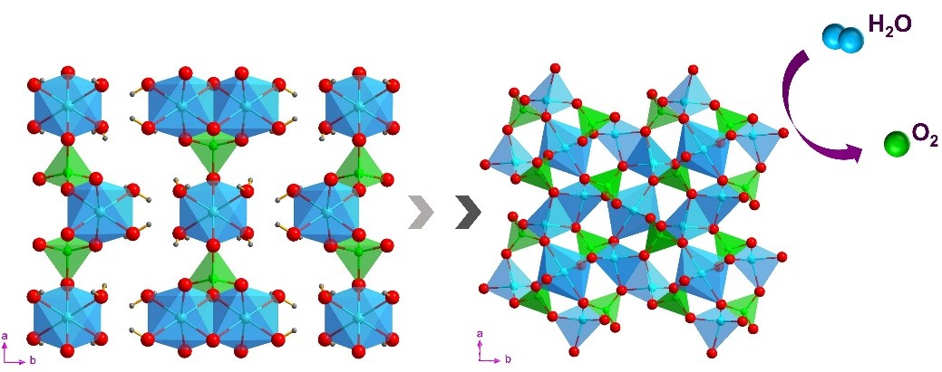 析氧反应是人工光合作用的重要反应,反应产生的质子和电子对于后续的阴极反应(如析氢反应、氮气还原和二氧化碳还原)具有重要意义。电催化析氧反应过程中涉及到复杂的电荷转移,动力学过程缓慢,因而在电催化过程中会造成较大的能量损失。廉价高效的钴基催化剂是一种有前景的析氧反应材料。计算和实验研究表明,钴中心的配位结构和电子构型对电催化效率有显著影响。然而,对钴基催化剂的构效关系研究仍然存在不足之处。例如,对于八面体和四面体结构的钴基催化剂,析氧反应的活性来源仍存在争议。基于此,分子模拟与太阳能转化团队制备了具有不同钴配位构型的磷酸钴材料,探究配位环境对析氧反应活性的影响。该工作为析氧反应的构效关系研究提供了深入的分析和重要的参考意义。