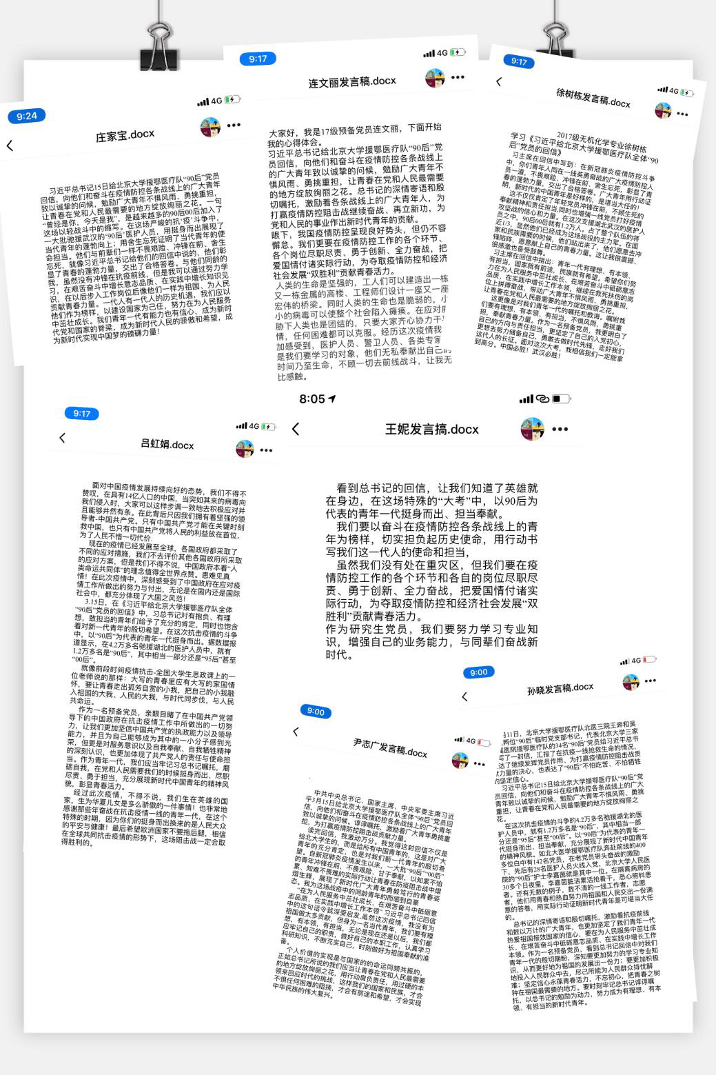 赖浩然同志表示90后见证了祖国飞速发展的三十年,终有一天会是中流砥柱,这次灾难会让90后更加坚韧,奋勇向前。“哪里有什么白衣天使,不过是一群孩子换了一身衣服,学着前辈的样子,治病救人,和死神抢人罢了。”这句话在抗击疫情斗争开始之时,深深触动了周琪同志的心,她指出作为当代研究生,即使不能给国家和人民做像伟大一线防疫战士一样的事情,但是一定要树立正确的观念,战胜病毒责无旁贷!