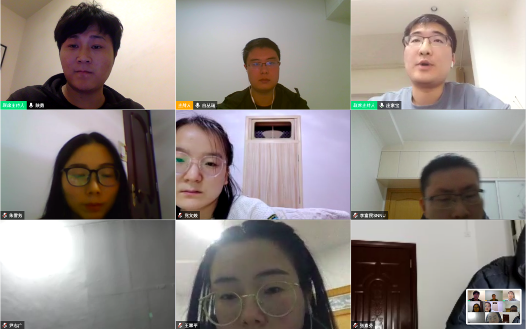 会议的第一阶段,党员们通过腾讯会议进行学习交流。连文丽同志分享了全国目前抗击疫情取得的成果,激励大家坚定信心。庄家宝同志讲述了抗疫一线工作人员的日常生活,使大家对抗疫一线工作人员的付出与牺牲有了更深刻的了解。王翠平同志分享了她对于自身责任的感悟,作为一名研究生共产党员,即使不能投身一线的抗疫队伍中去,但也有自己应尽的责任和义务,有自己的战场,有自己能够做到的事情。