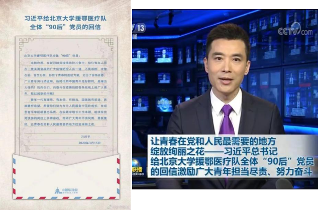 3月15日,中共中央总书记、国家主席、中央军委主席习近平给北京大学援鄂医疗队“90后”党员回信,向他们和奋斗在疫情防控各条战线上的广大青年致以诚挚的问候,勉励广大青年不惧风雨、勇挑重担,让青春在党和人民最需要的地方绽放绚丽之花。十博(10bet)亚洲官方网站