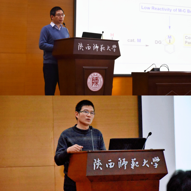 杰出青年基金获得者李兴伟教授和“青年长江”学者翟全国教授为研究生们作了大会报告。李兴伟教授以“不对称碳氢与碳碳键活化研究”为题,通过介绍自己课题组近一两年开展的一系列课题研究,与研究生们分享研究心得,“有失必有得”、“思路具体化”、“目标明确、独创新颖”、“由浅入深、步步深入”、“深入合作、拓宽视野”,更是指出很多好的科研成果是在经历了成百上千次尝试后才得到的,所以“勤奋、不言轻易放弃”是研究生求学阶段必备的品质。翟全国教授以“气体吸附分离功能导向三核簇基框架的精准合成化学”为题,为同学们分享了自己的研究历程,特别介绍了自己如何在自己独立工作后凝练自己的研究特色,在浩瀚的学术领域,确立自己的立足之地。两位教授的精彩报告,为研究生学术论坛热烈开场。