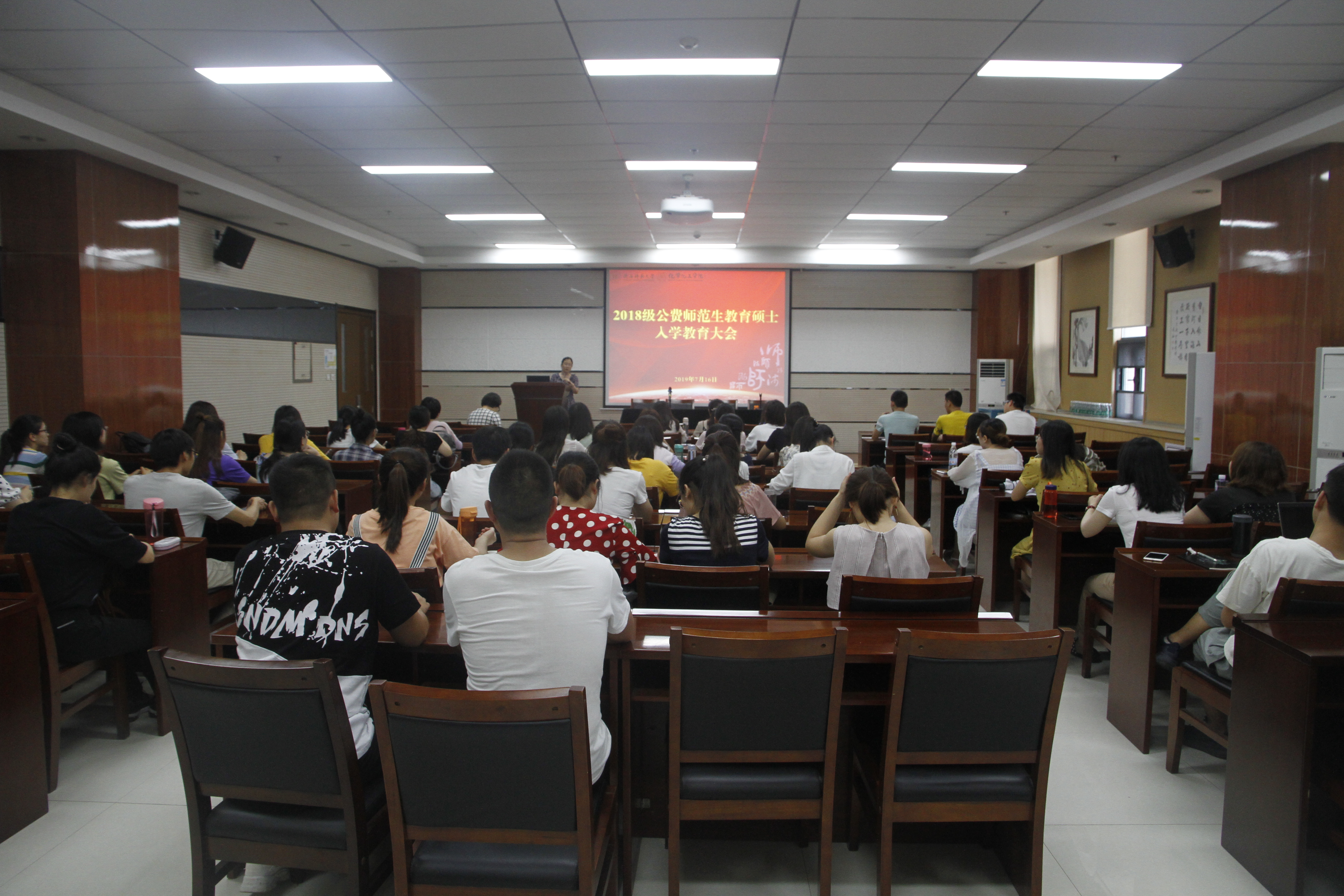 2019级免费师范生教育硕士入学教育大会在文津楼101报告厅举行。十博