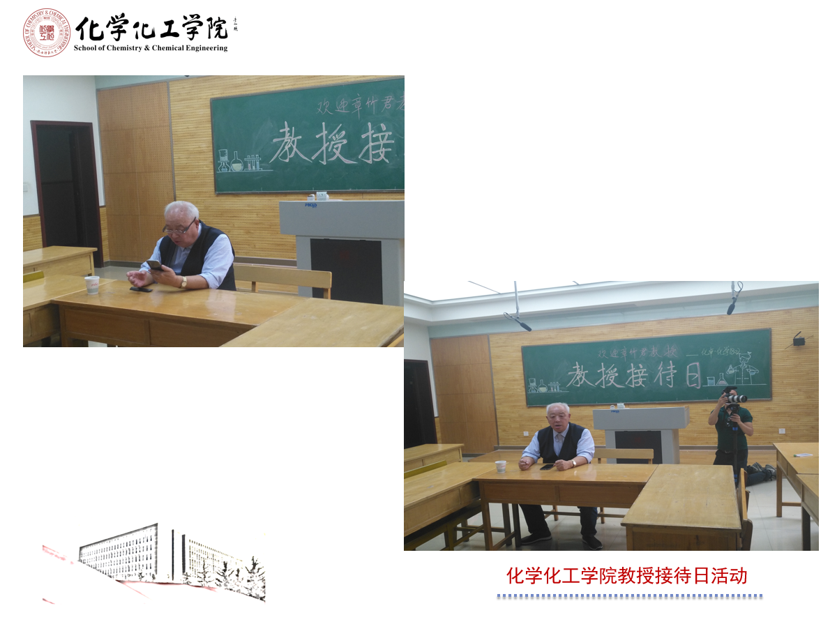 5月12日化学卓越班和化学1802班举行教授接待日活动,邀请章竹君教授与同学们进行交流。章爷爷已经执教60年,从1959年毕业直到现在,依然耕耘着无数学子。当谈到如何看待教师这个行业时,他首先想到的是中华民族、家国情怀赋予教师这个行业的精神,他说:“教师,不仅要传道授业解惑,具有很强的业务知识水平,更应该在这个知识爆炸的年代,通过更多途径鉴别知识、筛选知识,到达继续学习、终生学习,努力为国家为社会为自己实现应有的价值的目的。”老当益壮,宁移白首之心,章爷爷就是这样一位老当益壮的人;穷且益坚,不坠青云之志,章爷爷就只这样一位从时代里走出来的科学家。“眼因流多眼泪而愈益清明,心因饱经忧患而愈益坚韧。”在章爷爷的青春岁月里,有他的良师益友,更有他自己的坚韧与顽强,乐观与开朗,执着与努力。作为后辈学子应该学习章爷爷敢于吃苦、博学奋进、不忘初心和乐观开朗的精神。