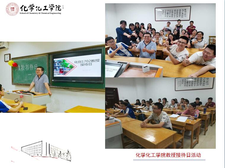 5月12日,化学类1802全体同学在教学八楼8407教室举办教授接待日活动。本次活动以“Chemistry and Future”为主题,邀请了翟全国教授出席活动。翟教授向同学们讲述了他的大学生活并给同学们提出了一些建议。作为师大毕业生,他当年在师大的生活与同学们完全不同:在固定教室上课,七点早点名,然后早操、早读、上课,单调的大学生活使他有遗憾也有收获。翟教授否定了“上大学就要放松”的观念,向同学们强调了学习的重要性,并鼓励有能力的同学勇敢地走出去,不要墨守成规,要抓住机会让自己走的更高更远。翟教授向同学们分享了一些同学们可以从事的职业,并讲到在学习上“不要把目标树立的过分长远,应该把目标细化”,强调了合理利用碎片化时间的重要性,使同学们受益匪浅。