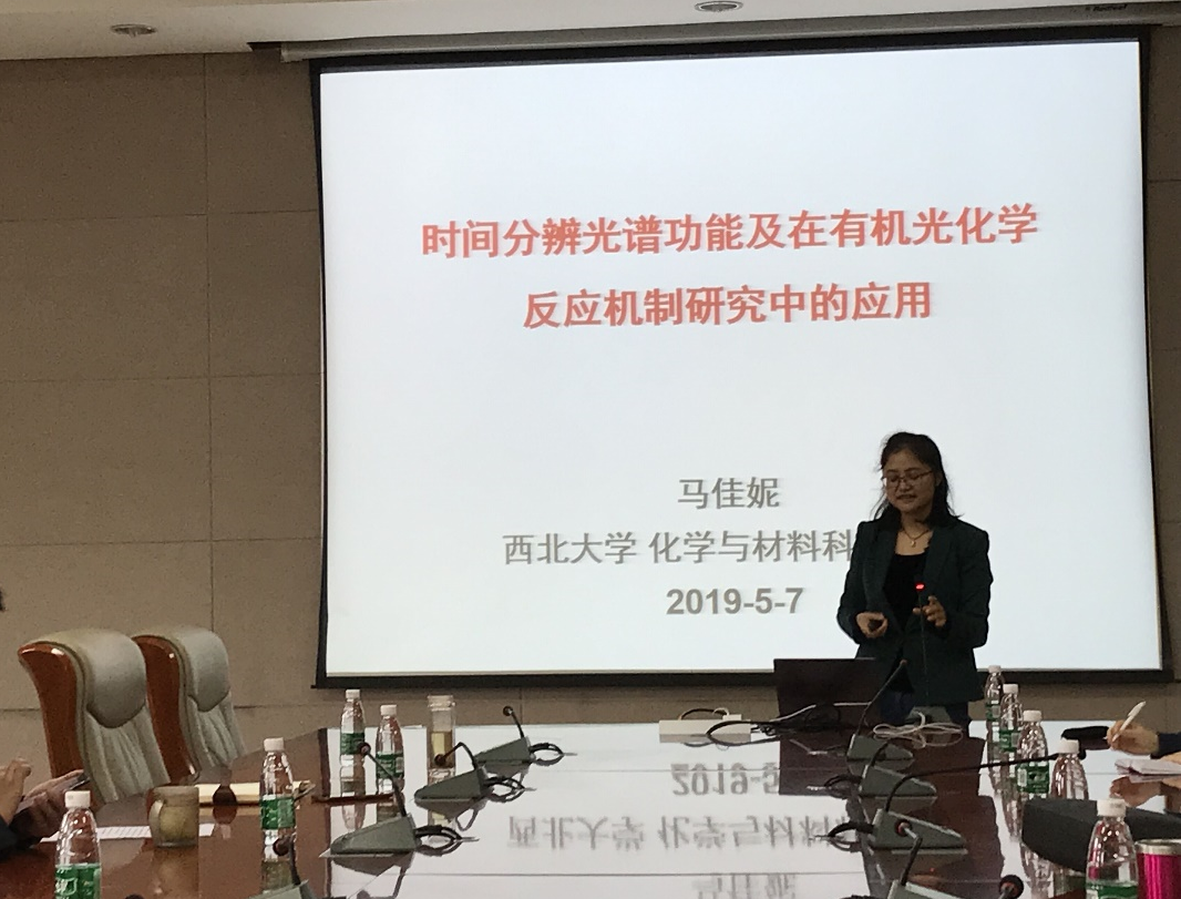 此次报告中,马佳妮副教授首先介绍了时间分辨光谱的基本概念及在有机光化学反应机制研究中的应用。接着她介绍了课题组开展的研究工作,从二苯甲酮和蒽醌化合物“间位效应”光化学反应机理研究、光诱导生成醌甲基中间体的反应机理研究及光掩蔽化合物的光脱保护反应机理研究等三方面展开报告。最后,她举例讲述了时间分辨光谱在其他方面的应用和进展。