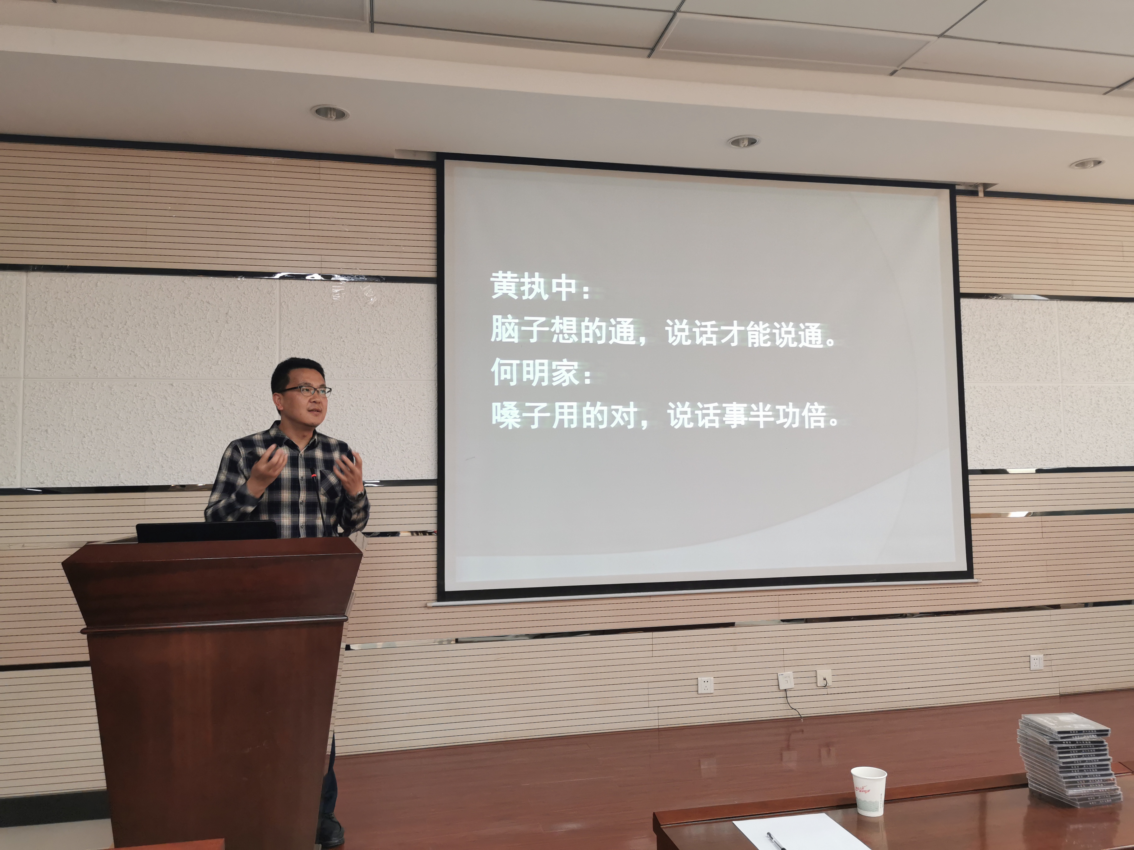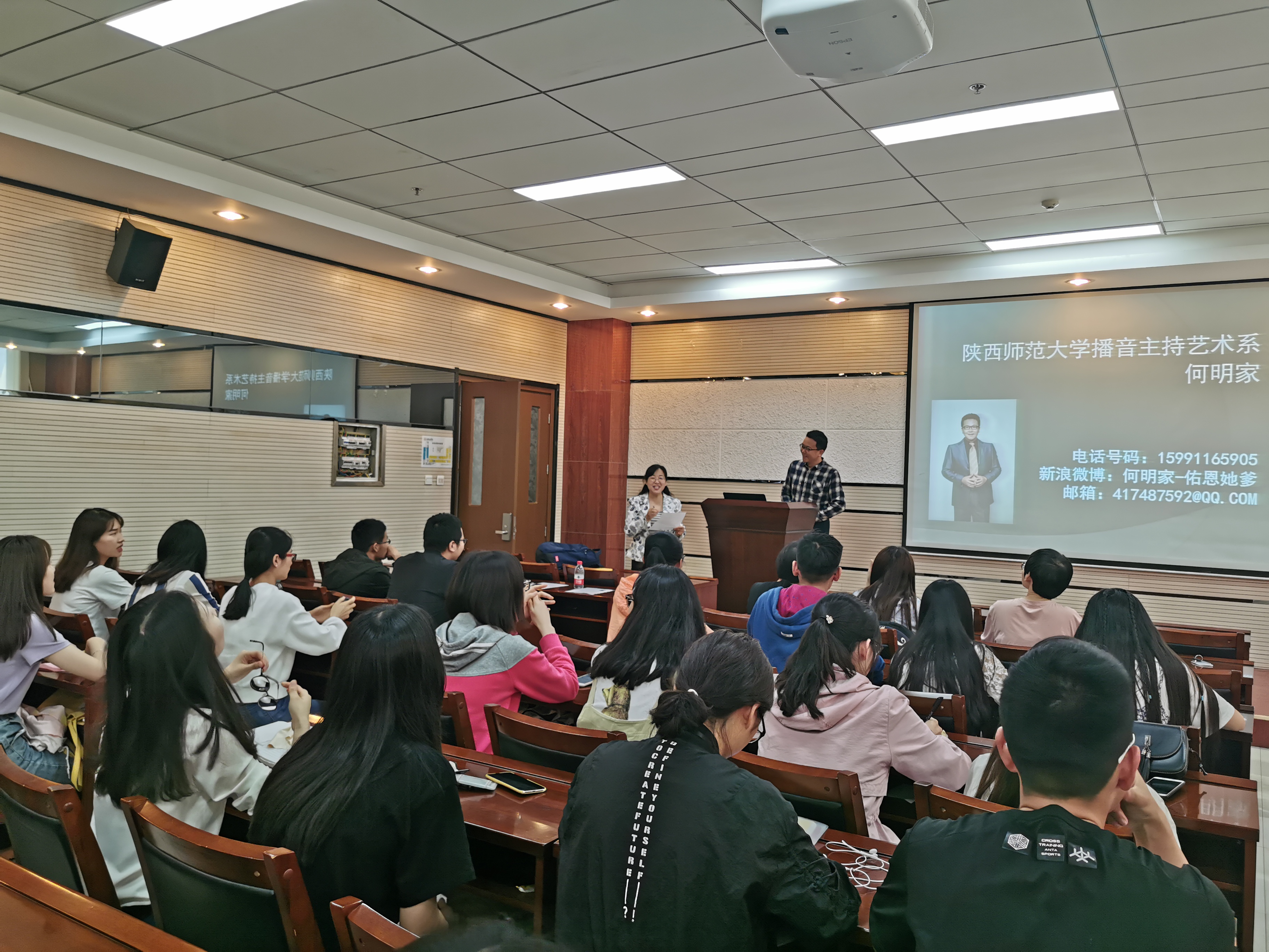 播音与主持艺术系的何明家老师为全体2015级化学师范生作了题为“教师职业用嗓技巧和嗓音保护观念纠偏”的报告。报告由陈亚芍教授主持。