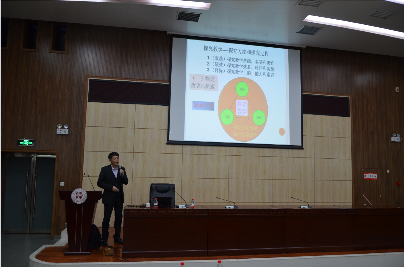 师范生在文澜楼B段一层报告厅做了题为《注重探究学习方法,提升微观探析素养》的报告。报告由十博