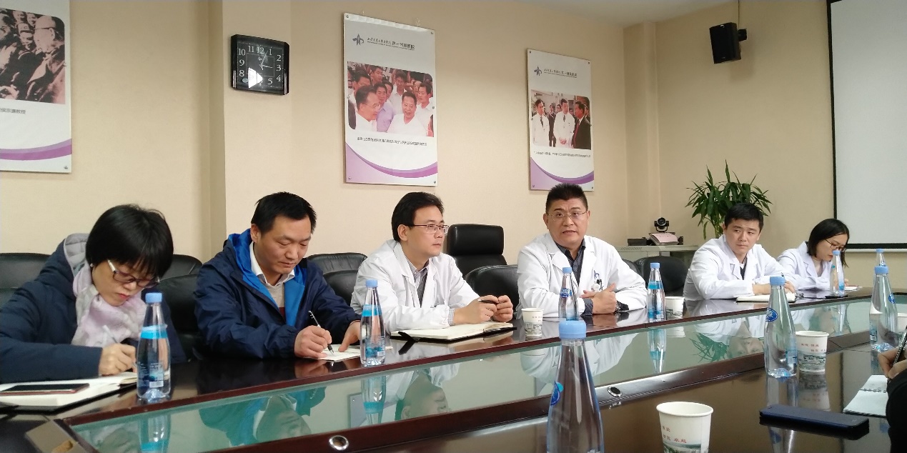薛东院长、刘成辉副院长、张静教授、张伟副教授、李楠副教授及彭浩南副教授就合作意向开展了深入的探讨与交流。对接交流会由交大一附院院长助理韩建峰主任主持。