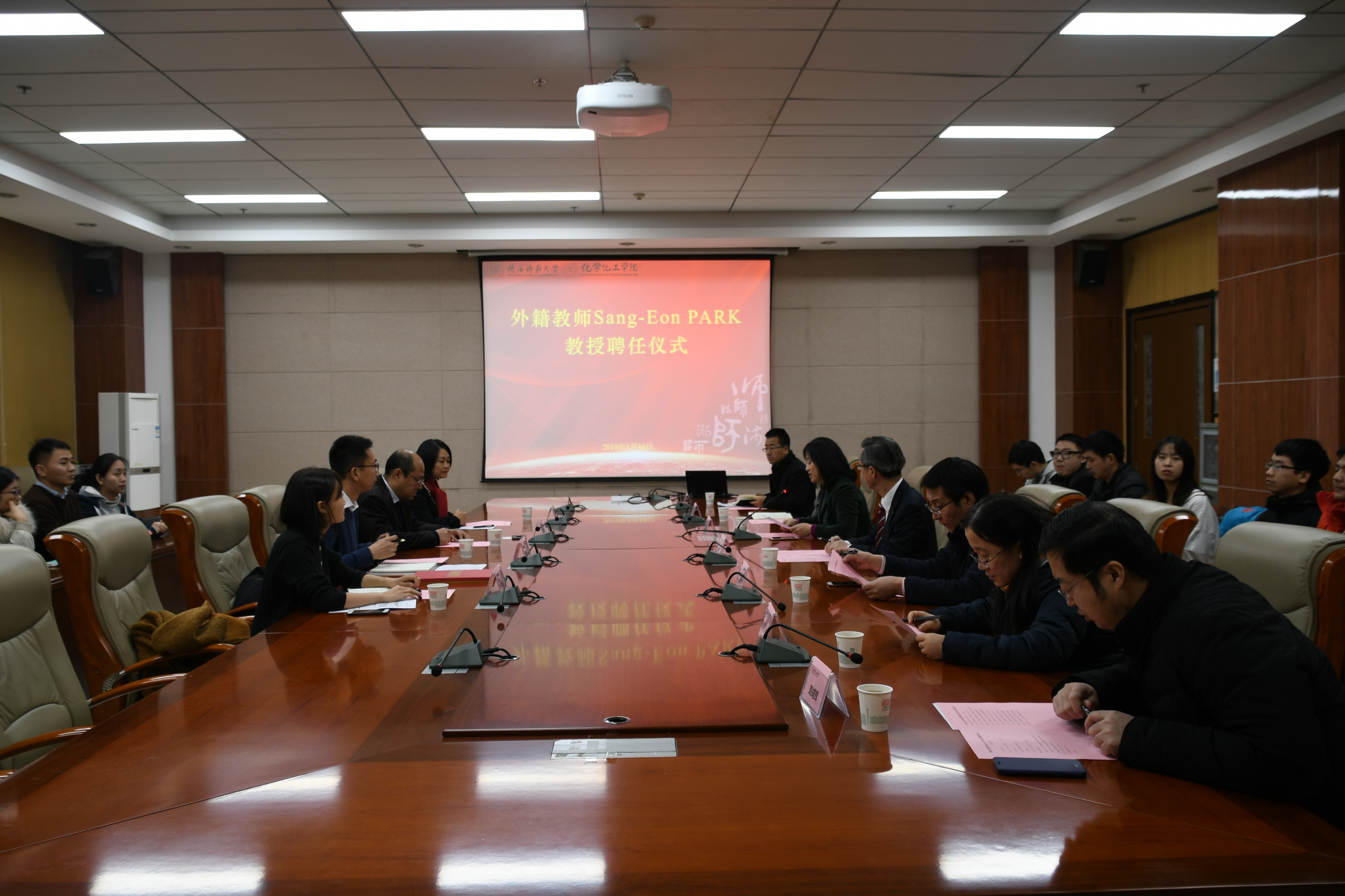 在1568会议室举行了外籍教师Sang-Eon Park教授聘任仪式。副校长李磊、人事处副处长樊婧、人事处外籍教师管理科科长蔺丰辉、科员王晓月,十博