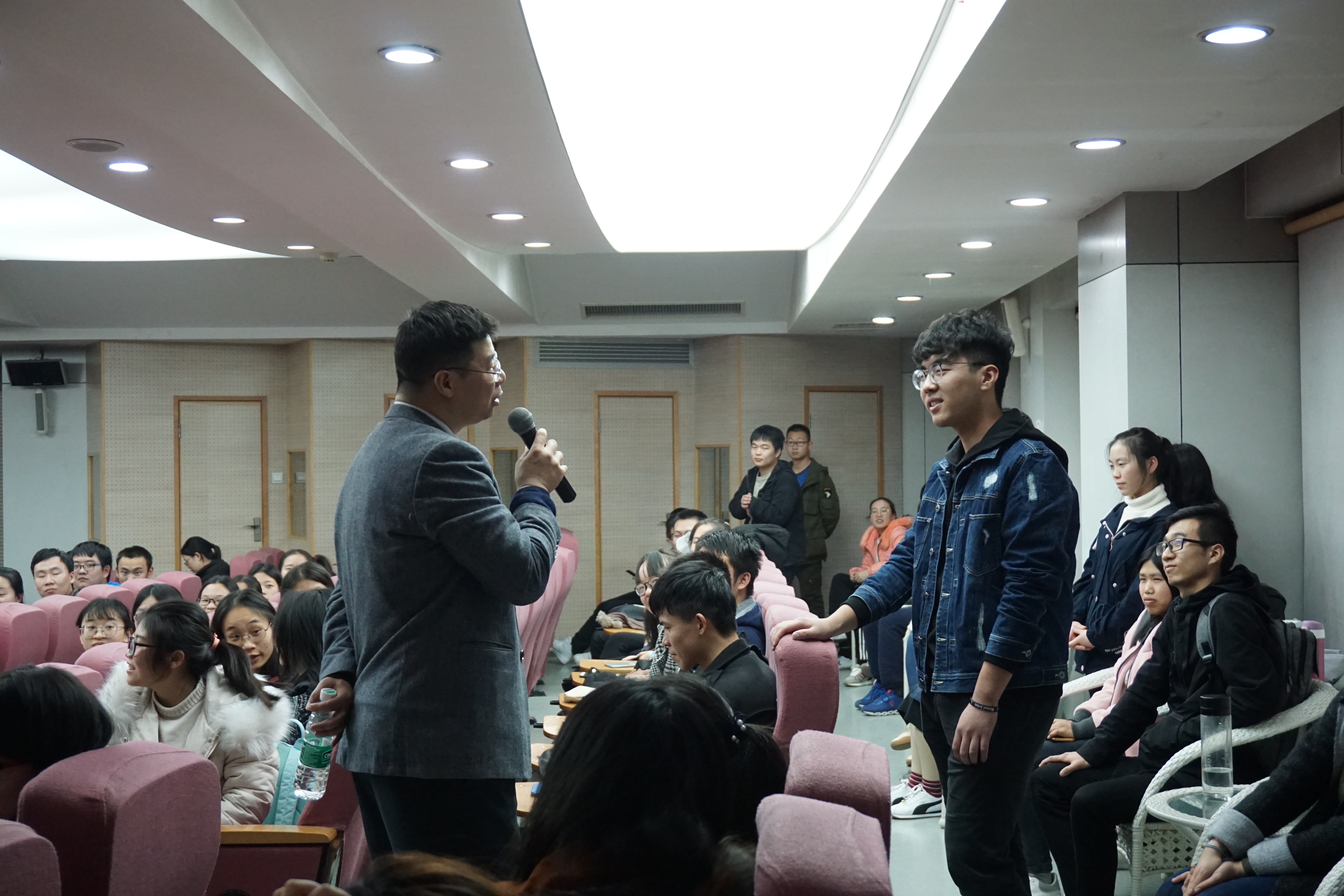 毕业生评为“最受学生喜爱的课程老师”之一,他的语言风趣幽默,讲座生动活泼,全场与观众紧密互动,让大家在轻松愉快的氛围中学习到专业知识,也感受到教学名师的人格魅力,讲座在同学们热烈的掌声中结束。