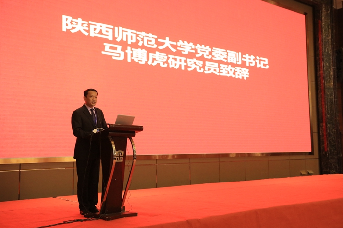 我校党委副书记马博虎研究员在致辞中代表学校对大会的召开表示祝贺。他首先介绍了西安的历史文化积淀、国家中心城市化建设进程、人才引进策略等,同时指出陕西师范大学在中西部基础教育中的重要作用,最后他着重介绍了我校化学学科的建设情况,特别强调了我校化学人是团结的、拼搏的、奋进的,学校对化学学科的发展寄予了厚望。他表示,此次会议的成功举办,在促进我校化学一流学科建设与发展、提升学科影响力等方面必将产生积极而深远的影响。