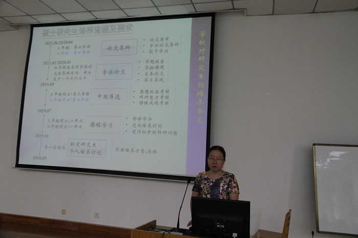 研究生培养的相关问题,介绍了研究生培养流程、要求和特色改革,研究生的奖助情况以及研究生期间的学习生活。她强调了学术道德是底线,不能触碰,在学术研究中同学们应实事求是,杜绝弄虚作假。