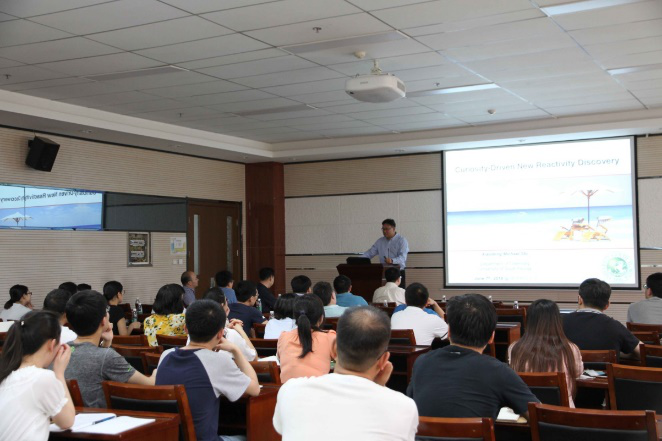 师生讲解了如何利用理论计算化学解决MOF材料的气体吸附方面的问题;施晓东教授则为我们展现了有机化学的神奇与奥秘以及他们课题组在1,2,3-三氮唑化学方面取得的重要研究进展;李霄鹏教授通过生动幽默的语言为我们阐述了如何通过自组装的策略逐级构筑优美的笼状超分子结构。最后,蔡健峰教授为我们讲述了生物有机化学方面的知识以及他们在多肽组装方面所取得的进展。整场报告涵盖面广,信息量大,具有启发性。