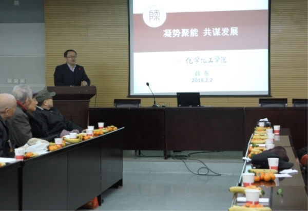 做了“凝势聚能,共谋发展”的报告。薛院长分别从学科发展定位、学科建设目标及基础、师资队伍建设和科研工作进展等几方面向退休教师汇报十博