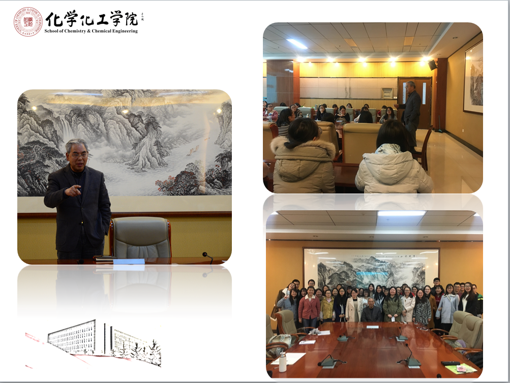 11月2日下午,章竹君教授应邀参加2016级化学创新实验班的教授接待活动。章老师对同学们在考研、就业、科研等方面提出的困惑一一解答。在问答过程中,年过八十的章老师侃侃而谈,不仅回答了同学们的问题,还对当代大学生所欠缺的稳打实干精神发表了自己的看法,同学们都深有感悟。活动最后,同学们用热烈的掌声表达对章老先生的感激之情,学生代表发表了对本次活动的感言,并表明未来将积极承担社会责任、努力实现个人梦想的决心。