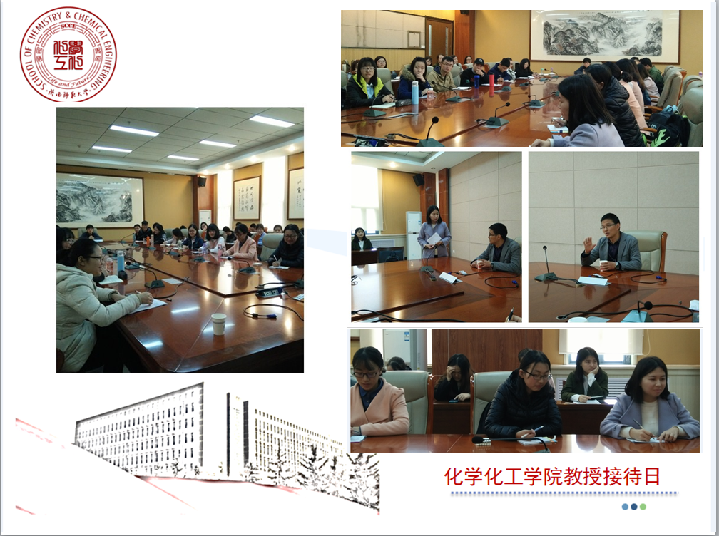 10月30日上午,徐峰教授应邀参加了2016级应用化学一班的教授接待日活动。在轻松愉快的氛围中,徐老师用诙谐幽默的语言向同学们讲述了自己的求学之路的艰辛,并用身边的事例告诉大家,大学生应该尽快适应社会,面对现实压力的同时也要学会调节心理压力。对于同学们考研就业方面的问题,徐老师指出,要选择适合自己的、同时也要适应社会需要的人生道路。最后,徐老师鼓励同学们出国留学,通过自己坚持不懈的努力,实现人生目标。