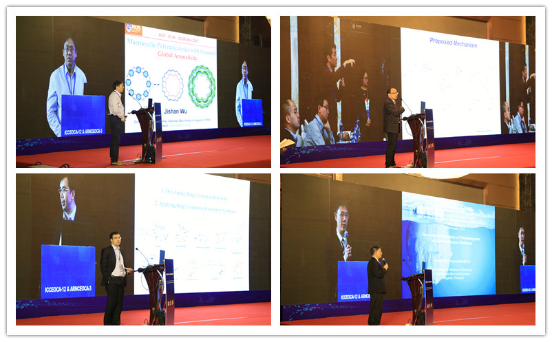2017年11月4日,来自新加坡国立大学吴继善教授、韩国Chonnam National University的Sunwoo Lee教授、北京大学余志祥教授、泰国Chulabhorn Graduate Institute的Poonsakdi Ploypradith教授、台湾国立中山大学的吴明忠教授从有机方法学、环加成反应、全合成等方面将有机化学的不同领域的最新研究成果呈现给与会代表,并和与会代表进行了深入的讨论。我校十博(10bet)亚洲官方网站 的王涛博士作了一分钟报告和墙报展示。