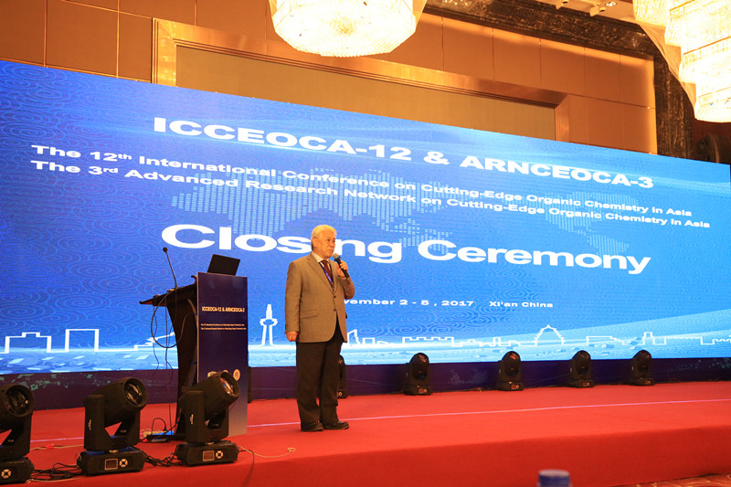 Nagoya University的Minoru Isobe教授致闭幕词。Isobe教授对研讨会进行了总结,感谢中科院上海有机化学研究所、中国化学会和陕西师范大学对此次研讨会的大力支持,对会议的圆满召开和所有工作人员的辛劳工作予以了赞扬。充分肯定了本次研讨会取得的丰硕成果,并赞扬本次研讨会秉承了大会一贯宗旨,为亚洲有机化学家提供了深层次的交流平台。上海有机所李昂教授代表会议主办方感谢所有的与会人员。最后,薛东教授向为本次会议顺利召开做出贡献的与会代表和工作人员表示了衷心感谢,特别感谢了外国语十博