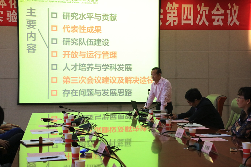 2017年9月29日上午,应用表面与胶体化学教育部重点实验室第二届学术委员会第四次会议在陕西师范大学长安校区致知楼1568会议室召开。学术委员会副主任房喻教授、委员中国科十博