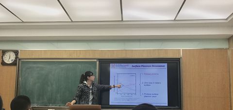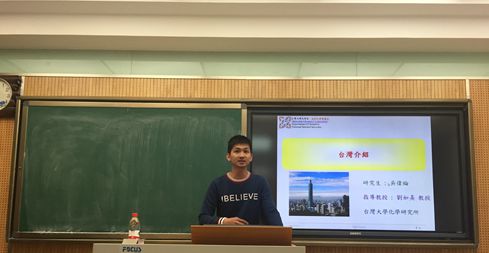 讲座在两位同学对台湾及台湾大学的介绍中拉开序幕,以台湾大学的化学系为基础,展示了自己所在室验室的研究方向、人员组成、分工和特色。据称,他们所在实验室的研究主要由发光材料、能源化学和纳米生化小组三个部分构成。两位同学主要对发光材料部分进行了详细的介绍,对正在研究的“新相红色氟化物RbGeF6(Mn4+)提升白色发光二极体的演色性”的实验进行了全面的讲解,从实验原理、经历阶段、应用前景、现有实验结果、与业界的联系等方面进行了生动形象的报告。在实验内容讲解之外,两位学长更是以自己的学习科研为基础,向大家讲述了自身的经历,从如何选择合适自己的方向、到大学时期在实验室内的学习重点和自身目标,并针对考取研究生时学校及导师选择等问题给出了一定的建议。同学们也积极主动地和学长进行交流,对学习中存在的问题进行了沟通。