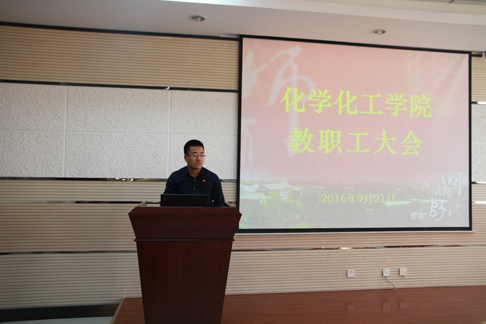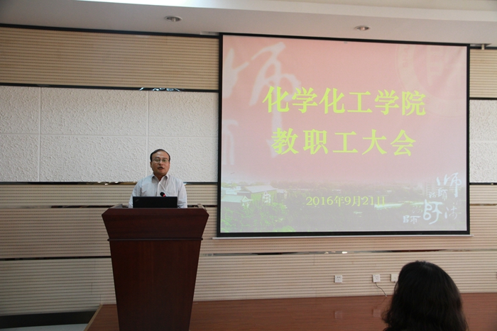 在致知楼六层报告厅召开全院教职工大会暨新任领导班子任命大会。副校长党怀兴、十博