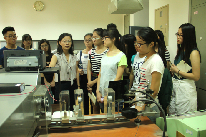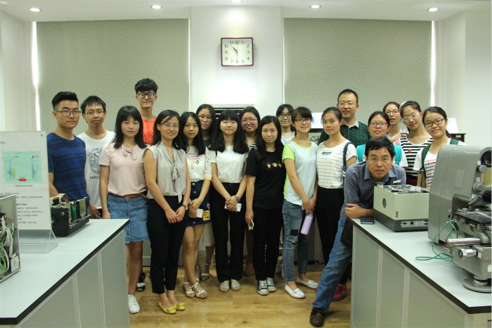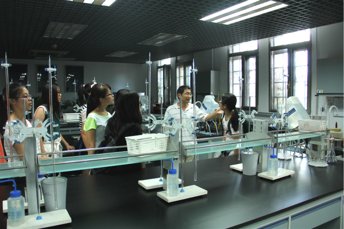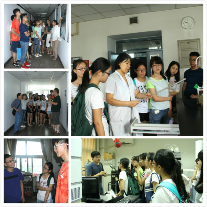 。首先,实验中心副主任高珍老师带领同学们参观了北京大学化学基础实验教学中心和化学实验示教中心,每到一处,均有专业老师详细讲解。参观过程中,高主任着重对北大本科生化学实验课程体系设置、培养目标及创新形式等内容进行了阐述,并对四大基础化学实验室及常用仪器纷纷做了介绍。在化学实验示教中心,同学们对陈列的不同年代的天平、剖开的测试分析仪器、“编织”的化学大分子模型等产生了浓厚的兴趣,纷纷表示通过实物参观,对一些先前只能在书本上看到的仪器及内部构造有了更直观的印象。最后,同学们参观了北京大学化学与分子工程十博