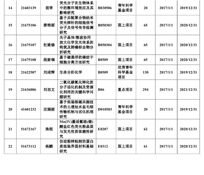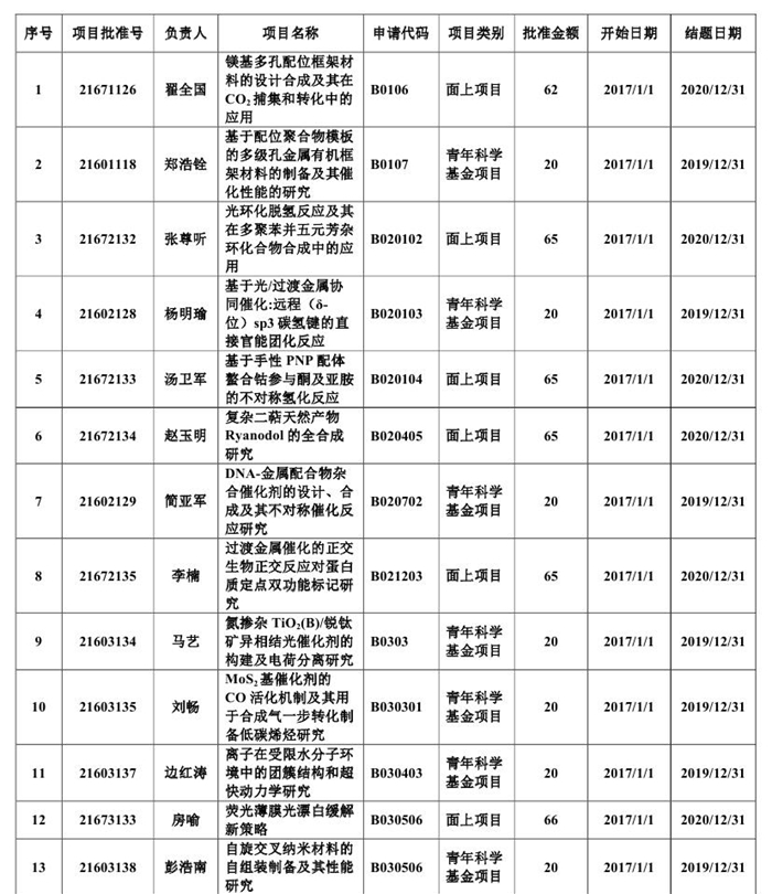 全校共有103项国家自然科学基金项目获得立项,直接经费4323万元。十博(10bet)亚洲官方网站 22个项目获得资助,资助直接经费1310万元。其中,刘忠文教授申报的重点项目“二氧化碳氧化转化的分子活化机制及资源化利用的关键科学问题研究”获得立项(全校唯一),资助直接经费294万元,刘成辉教授申报的优秀青年科学基金项目“生命分析化学”获得立项(全校唯一),资助直接经费130万元,此外,十博(10bet)亚洲官方网站 还获得面上项目11项,青年项目9项。