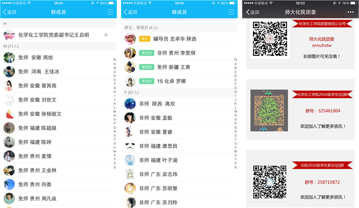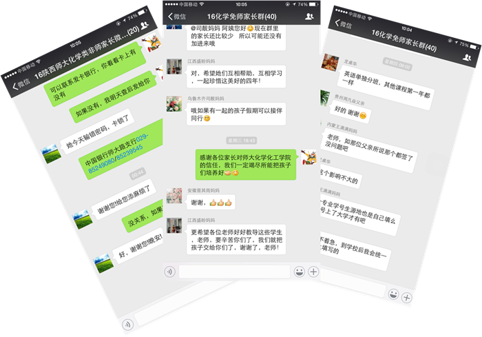 网站及微信公众平台发布公告,邀请新生及家长按实名申请加入“微组织”。短短的几天内,200余名新生及其家长迅速集结,随后又按照师范与非师范的不同类别建立了讨论组。通过网络交流,不但解答了新生关心的各种问题,而且让十博