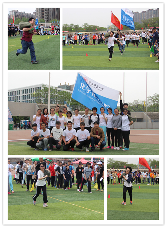 师生更是同心协力,勇创佳绩。在动力火车项目中,刘伟、严景丽老师与同学们并肩作战,随着一声哨响,他们步调有序,前进迅速,配合默契,将其他队伍远远甩在后面,摘得桂冠。在负重接力比赛中简亚军老师举重若轻,奔跑迅速,严景丽老师更是巾帼不让须眉,连超同小组两名对手,最终获得了第三名的成绩。在活泼的袋鼠跳比赛中,李超群老师,魏灵灵老师灵活迅速,大家在欢快的跳跃中轻松获得第六名。团结协作比赛中,面对其他十博