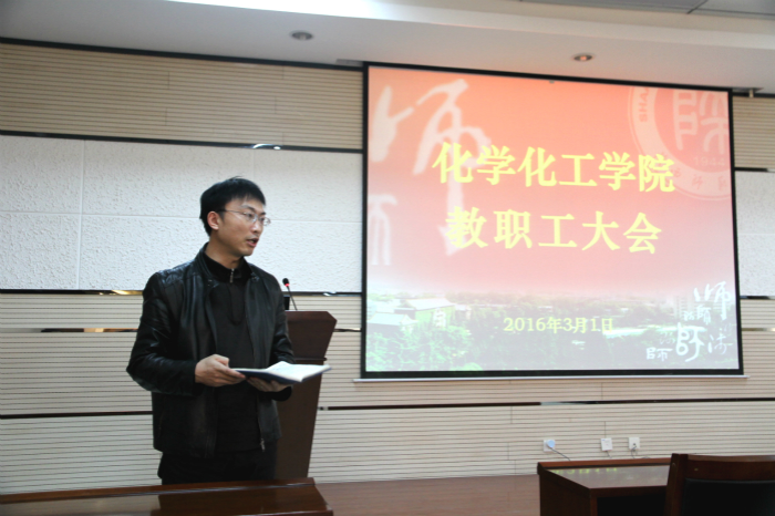 在致知楼六层报告厅召开全院教职工大会,传达学校2016年工作安排部署会议精神,部署2016年十博