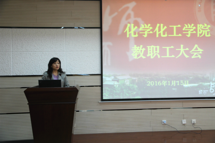 基本教务工作、《人才培养方案》的修订、“高校巡视诊断工作”的圆满完成、“化学卓越教师班”和“笃学化学实验班”的创立等方面对2015年度教学工作进行了汇报。他表示这些亮点工作将会极大程度地促进本科教学的规范化;拔尖人才培养方案的落实和完善将推动十博