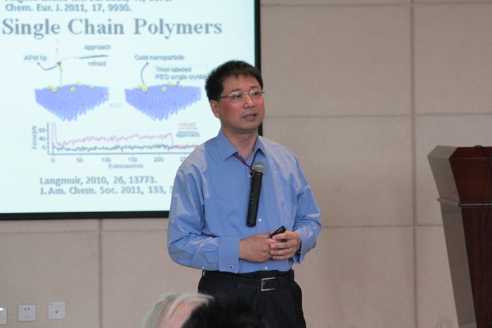 张希院士现任清华大学学位委员会副主席,并兼任中国化学会第28届理事会副理事长、国家自然科学基金委委会化学科学部主任。他在超分子组装与聚合物薄膜方面开展了系统深入的研究,并取得了一些在国内外学术界有影响的成果。此次报告中,张希院士基于自己的研究方向,重点介绍了如何克服超分子相互作用较弱的缺点从而构筑极其稳定的新型超分子聚合物,形成聚合物制备的新策略和新方法等,张希院士在超分子合成策略上的突破以及对弱相互作用的表征方法使在场师生受益匪浅。